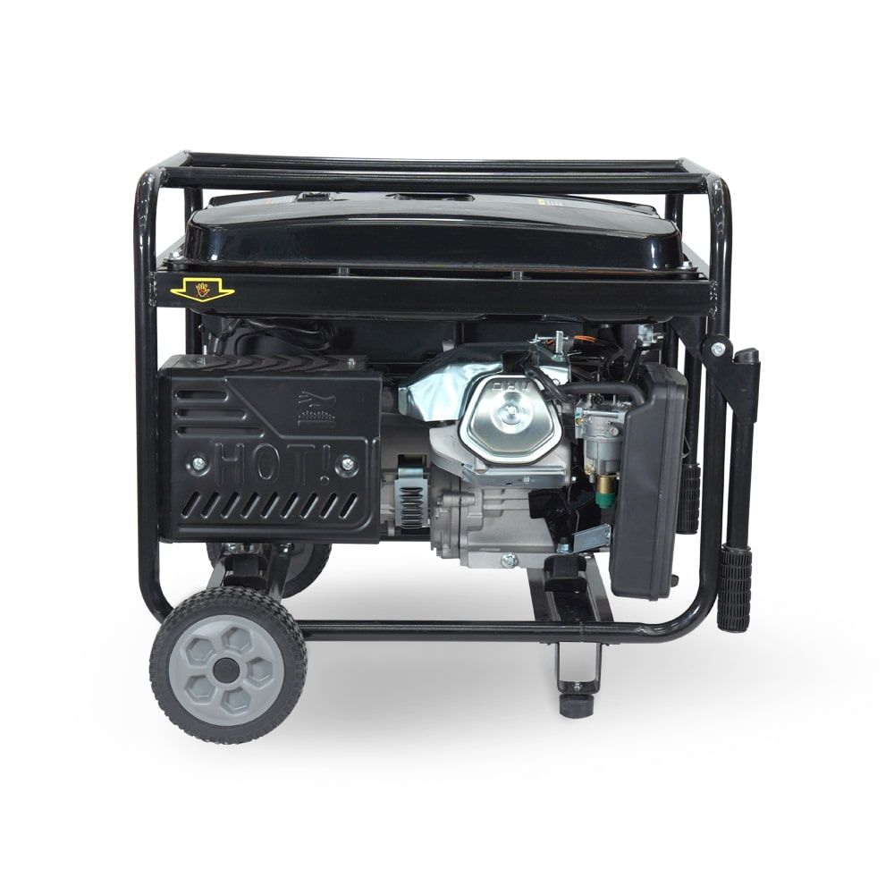 Генератор бензиновий; номінальна потужність 5000 Вт; максимальна потужність 5500 Вт; однофазний; вихідна напруга 230 В; 2 розетки 230 В; синхронний альтернатор з регулюванням напруги AVR; тип запуску: електричний стартер / ручний. Двигун: одноциліндровий чотиритактний OHV з об'ємом 389 см.куб.; максимальні витрати палива 0.36 л/год, номінальна швидкість двигуна 3000-3600 об./хв., об'єм паливного баку 25 л – для заправки підходить бензин АІ-92/АІ-95, об'єм мастила в картері 1.1 л. Розміри 710 / 530 / 550 мм, вага 85 кг. Рукоятки та колеса для транспортування