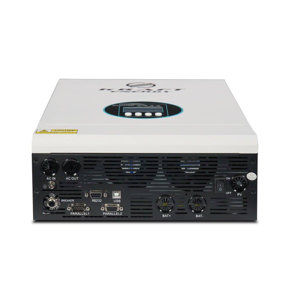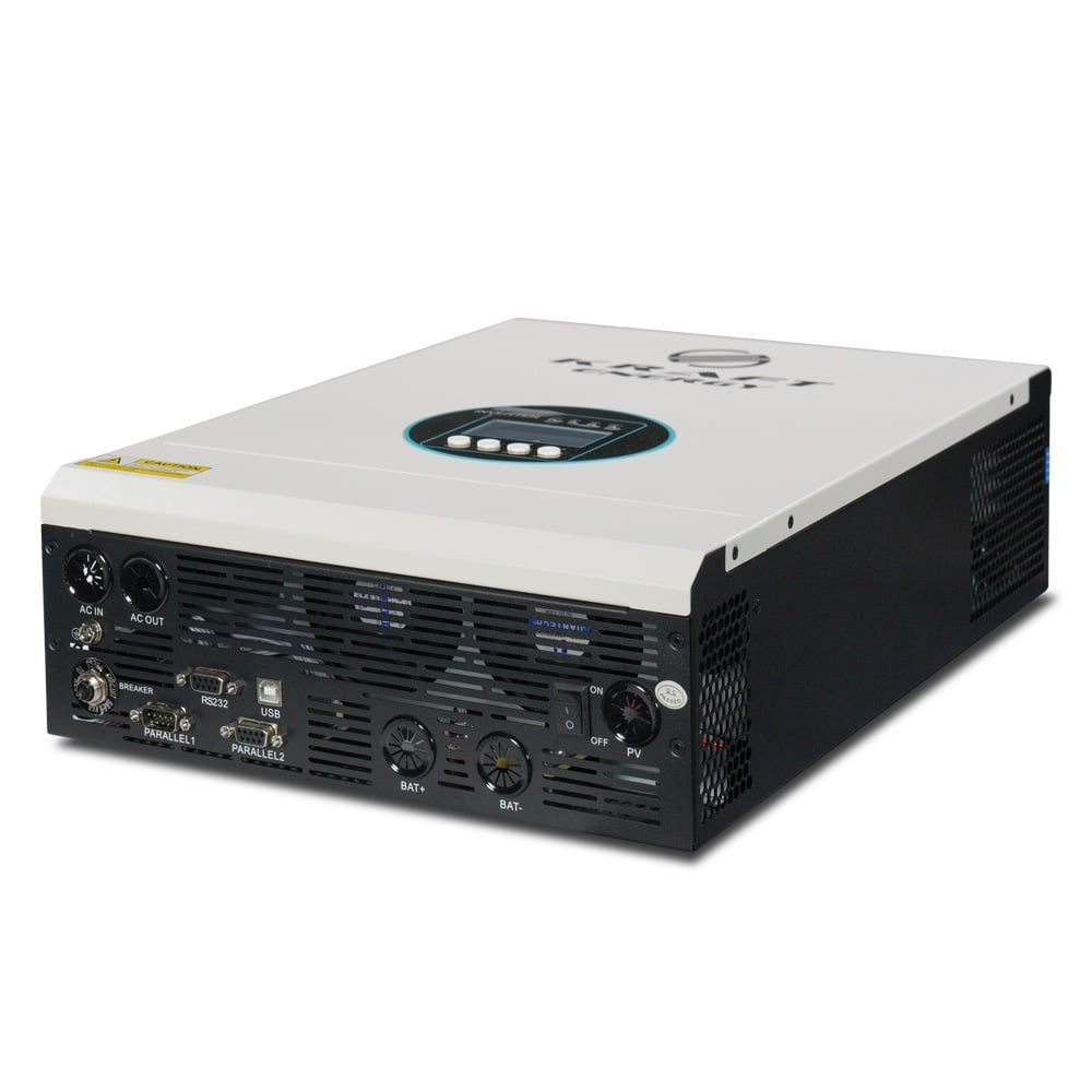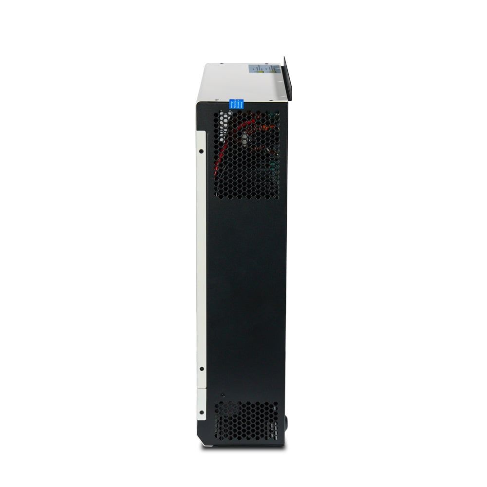 Гібридний однофазний інвертор з максимальною потужністю 5 кВт з вбудованим MPPT-контролером та вбудованим мережевим зарядним пристроєм, має правильну синусоїду на виході 220 В; максимальний струм заряду 80 А (100 А від сонця); напруга акумуляторної системи 48 В; максимальна короткочасна потужність 8 кВт; вхідна напруга 230 В ±25%; коефіцієнт потужності 1; ККД >85%; вихідна напруга 230 В ±10%; діапазон напруги від сонячних панелей 120-450 В; вихідна частота 50/60 Гц ±0.3%; час перемикання на АКБ: 5-8 мс; підтримка заряду АКБ типу AGM/GEL/LI та ручний режим; функція «холодного» пуску та автоматичної діагностики системи; захист від розряду та перезаряду АКБ, захист від перевантаження та температурний захист; режими роботи: 1) пріоритет мережі, 2) пріоритет АКБ, 3) економний режим, 4) автоматичний режим; температура середовища -10 °C ~ +50 °C; розмір 440 / 300 / 100 мм, вага 10 кг