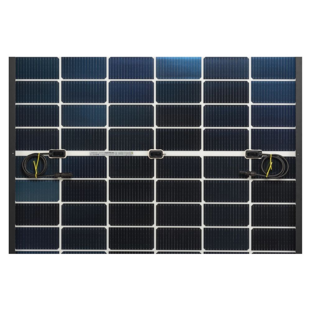 Монокристалічна сонячна панель потужністю 420 Вт, двостороння; ефективність 21.5%; напруга холостого ходу 38.05 В; струм короткого замикання 14.09 А; напруга за макс. потужності 31.8 В; струм за макс. потужності 13.21 А; макс. напруга у системі 1500 В; кількість фотоелементів 108 (6х18); вихідний роз’єм для підключення QC 4.10-351 / MC4-EVO2A; клас захисту IP68; робоча температура -40°C~+85°C; розмір 1722 / 1134 / 30 мм; вага 21.5 кг