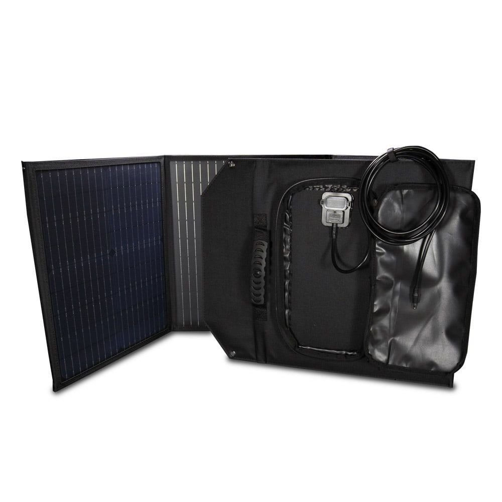 Монокристалічна розкладана сонячна панель для автономної роботи або в складі зарядних станцій Kraft; максимальна потужність панелі 200 Вт; напруга холостого ходу 24.2 В; струм короткого замикання 10.7 А; номінальна напруга 20.5 В; номінальний струм 9.7 А; вихідний роз’єм живлення DC 5.5/2.1; розмір в розкладеному стані 2205 / 570 мм, транспортувальний розмір 570 / 546 мм