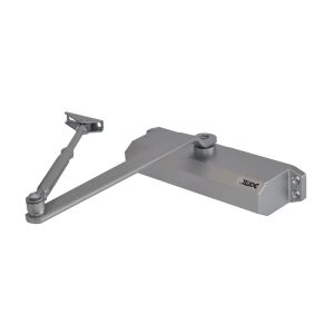 Дверний доводчик; конструкція тяги – складаний важіль; маса дверного полотна 85-120 кг; розміри 248 / 45 / 72 мм; колір срібний