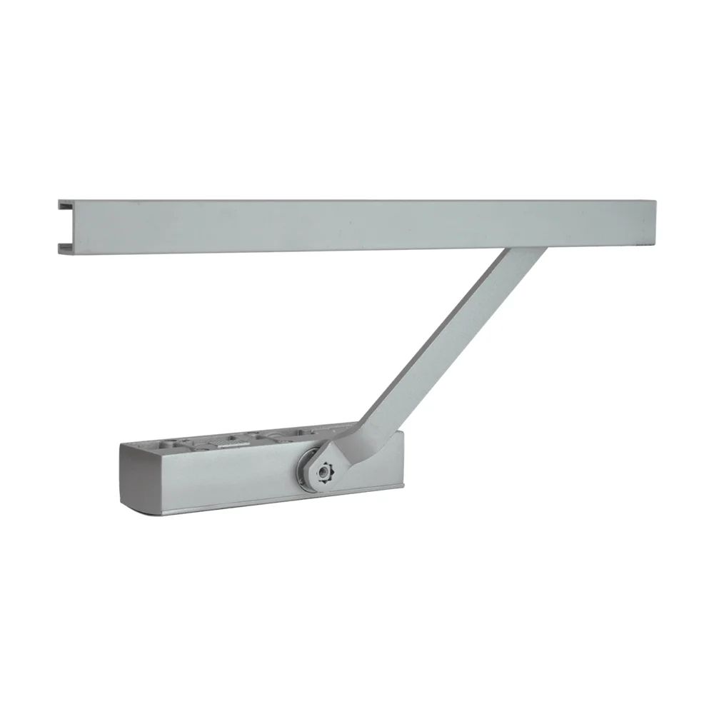 Дверний доводчик; конструкція тяги – ковзаючий канал; маса дверного полотна 45-85 кг; розміри 207 / 55 мм; колір срібний