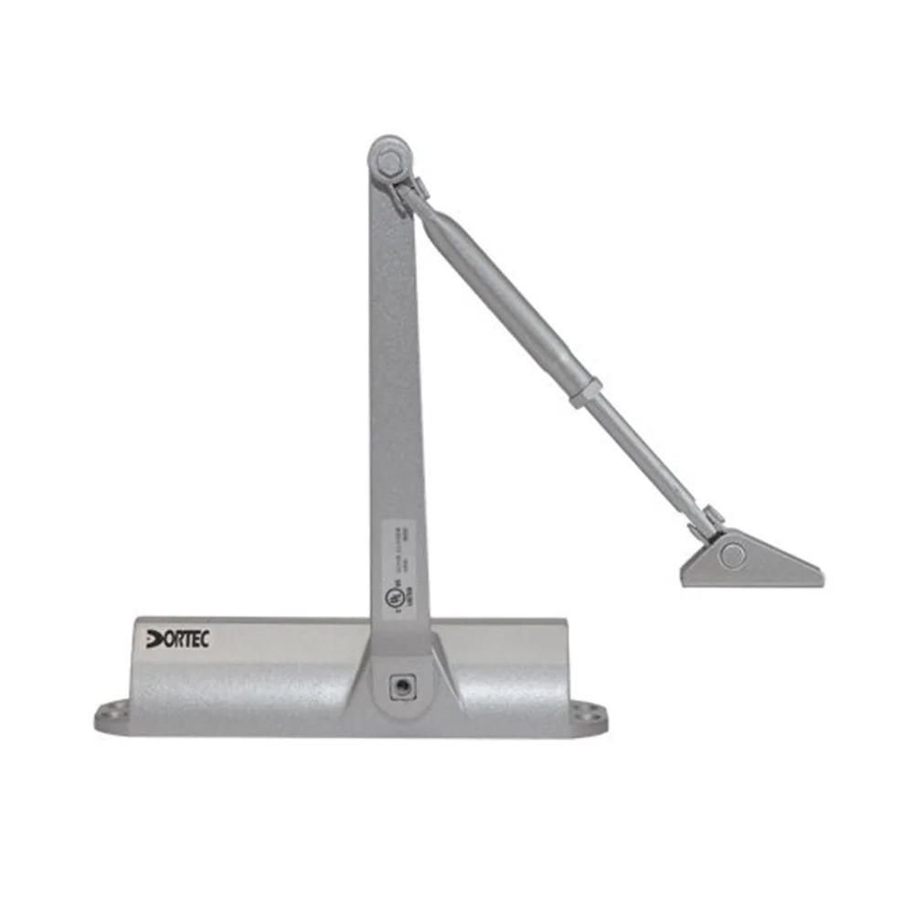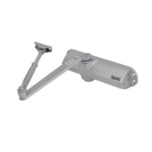 Дверний доводчик; конструкція тяги – складаний важіль; маса дверного полотна 65-85 кг; розміри 220 / 56 / 46 мм; колір срібний