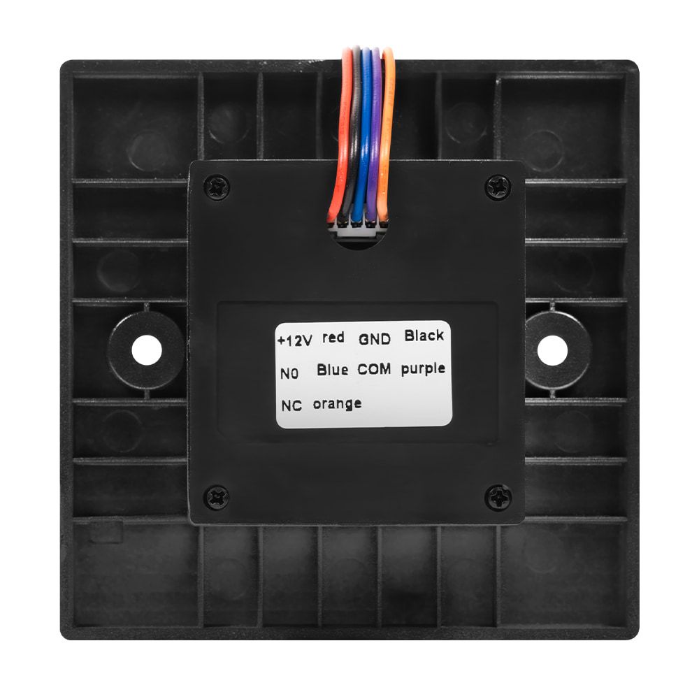 Кнопка виходу безконтактна, врізна; дальність зчитування 1-10 см; LED-підсвічування кнопки; тип контакту – Н/Р, Н/З; живлення DC 12-24 В; матеріал корпусу пластик; розміри 86 / 86 мм