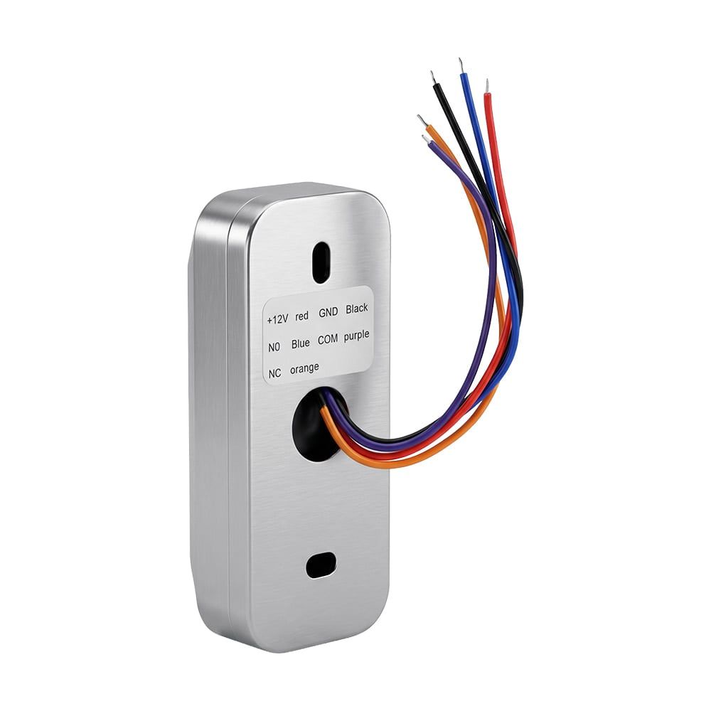 Кнопка виходу безконтактна; тип контакту НР, НЗ; регульована дальність спрацювання 3-15 см; максимальний струм/напруга комутації 1A@36VDC; живлення DC 12 В; LED-індикація стану роботи; накладний тип монтажу; ступінь захисту IP68; матеріал корпусу цинковий сплав; розміри 80 / 32 / 20 мм
