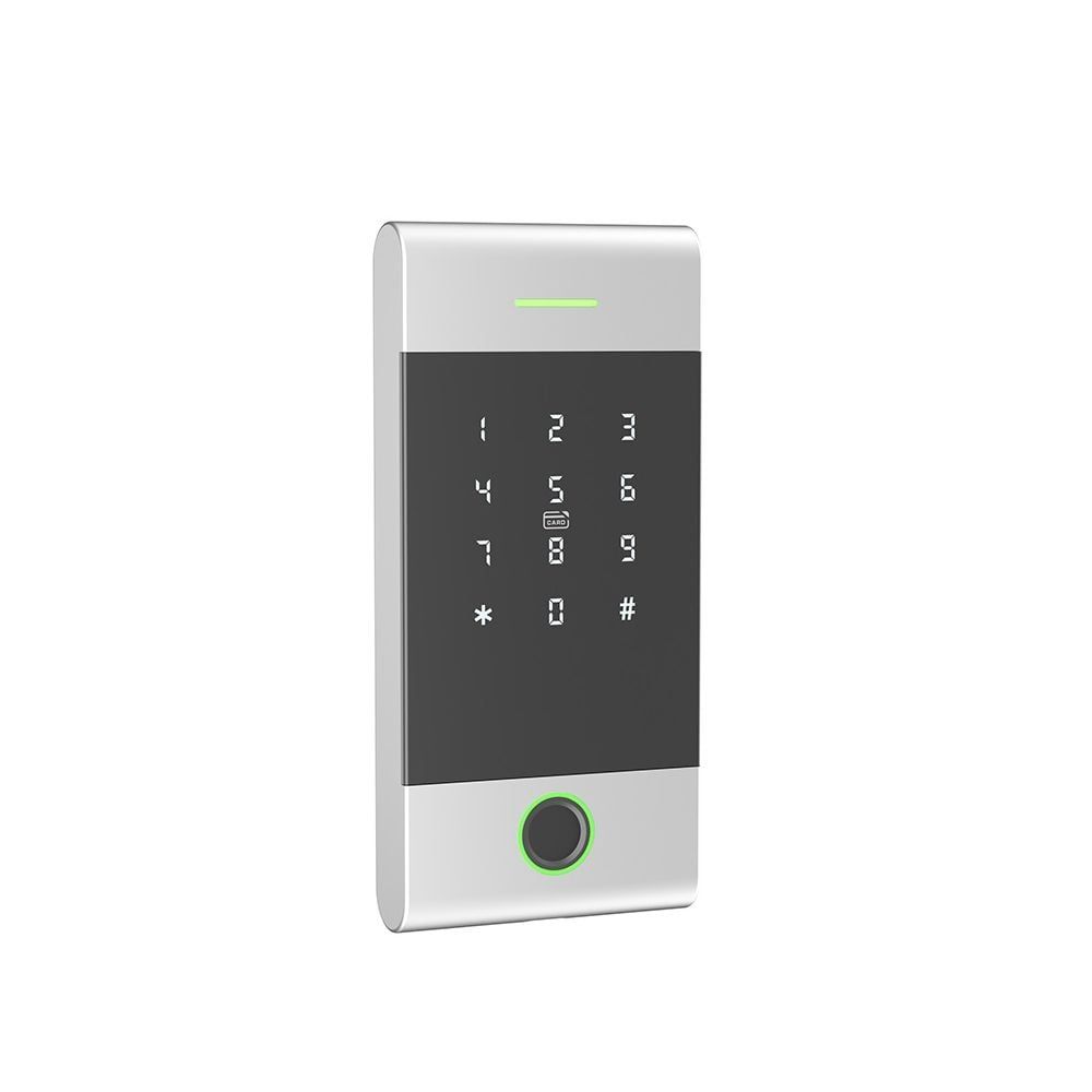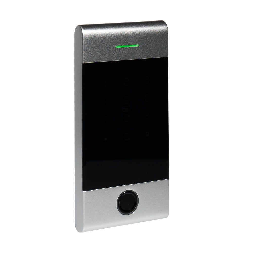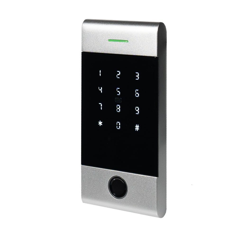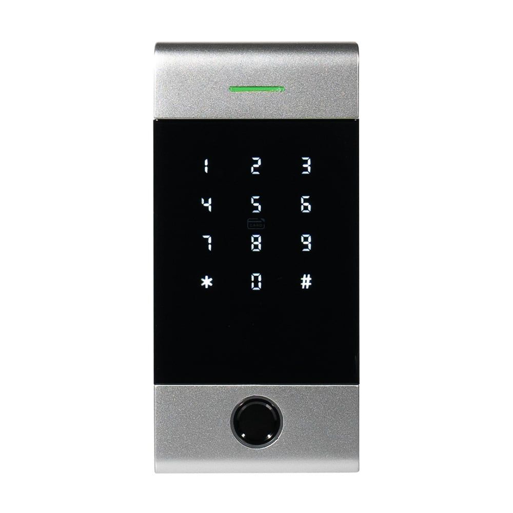 Автономна сенсорна клавіатура/контролер зі скануванням відбитку пальця та вбудованим зчитувачем карток і брелоків Mifare (13.56 МГц); вбудований Bluetooth, працює через мобільний застосуноки TTHotel та TTLock; контроль доступу: за відбитком пальця, кодом, картою, через мобільний застосунок; живлення DC 12 В; матеріал алюмінієвий сплав; ступінь захисту IP65; розміри 158 / 74 / 17 мм