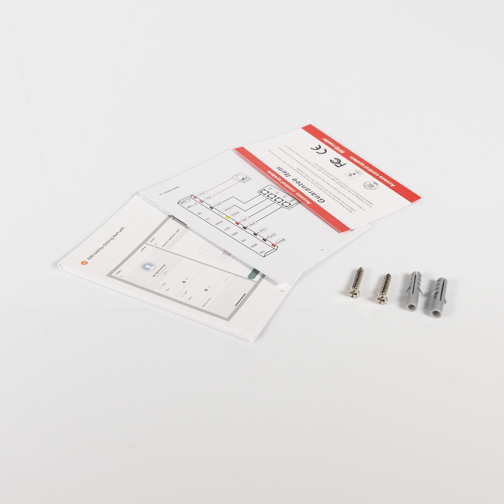 Кодова клавіатура з вбудованим зчитувачем карт та брелоків стандарту EM-Marine і контролером на 1 реле; вбудований WiFi, працює через мобільний застосунок Tuya Smart; кількість користувачів 2000; дальність зчитування до 8 см; робоча частота 125 кГц; інтерфейс Wiegand 26; струм комутації реле 1 А; регульований час відчинення дверей 0-99 с; індикація: звуковий сигнал, світлодіодна; сенсорні кнопки; живлення 12 В, споживання 100 мА; зовнішнє встановлення, робоча температура -45°C ~ +60°C; ступінь захисту IP68; пластиковий корпус; розміри 117 / 42 / 16 мм; вага 100 г