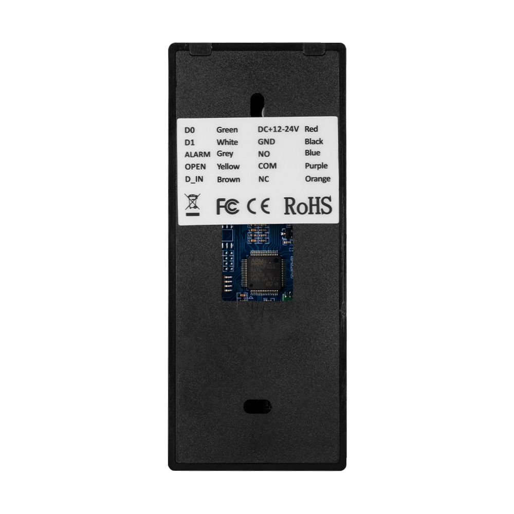 Автономна клавіатура/контролер з вбудованим зчитувачем карток і брелоків Mifare (13.56MHz); вбудований WiFi, працює через мобільний застосунок eWeLink; дальність зчитування карт 2-5 см; час відчинення дверей 0-99 сек; інтерфейс Wiegand 26 – можна підключити додатковий зчитувач; контроль доступу: за кодом, картою, через мобільний застосунок; пам’ять 2000 користувачів; підсвічування клавіатури; живлення DC12В (30мА); пластиковий корпус; ступінь захисту IP54; робоча температура від -40˚C до +60˚C; розміри 111 / 46 / 22 мм