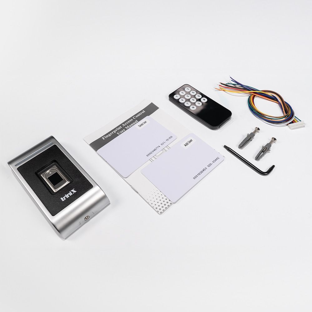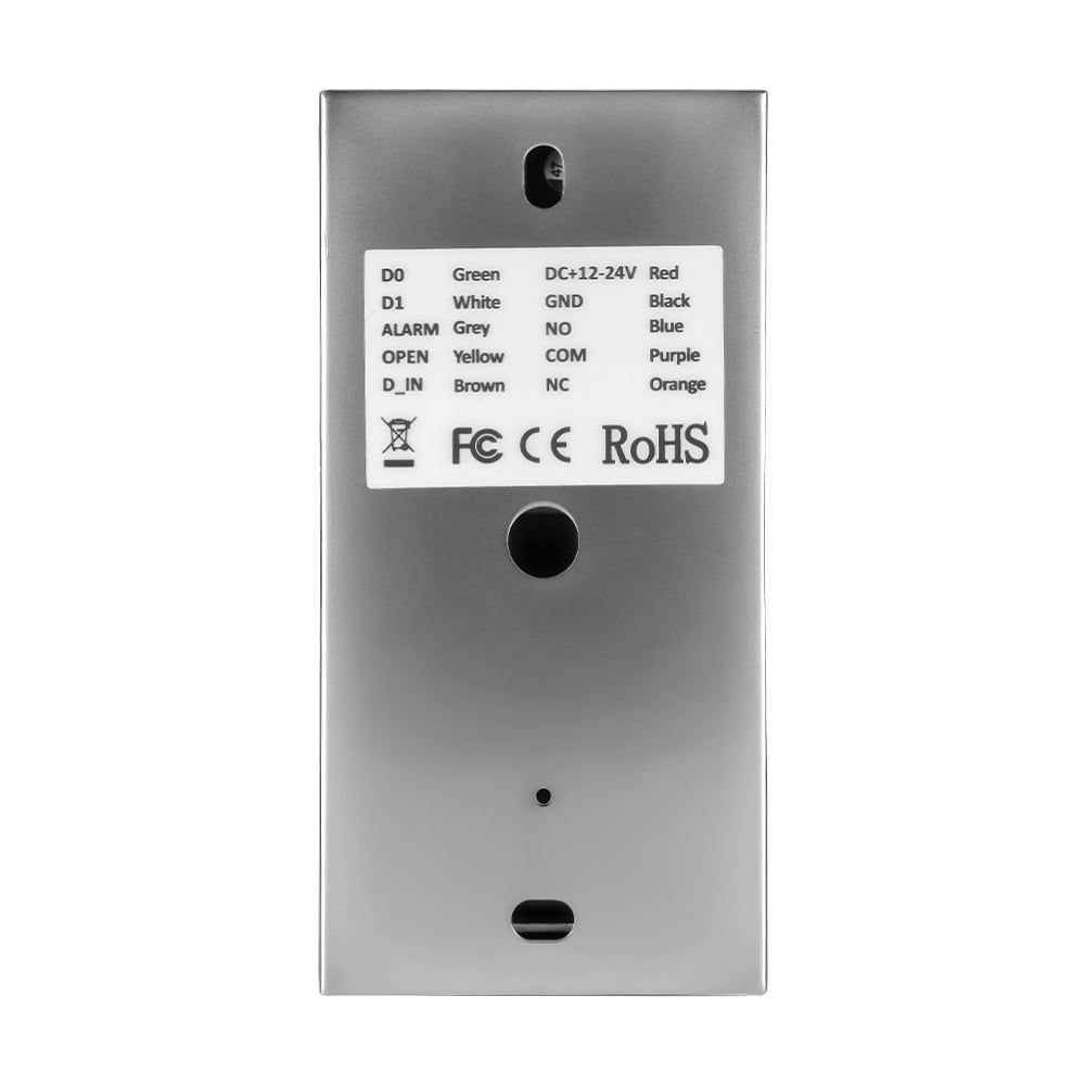 Автономний біометричний термінал контролю доступу зі зчитувачем відбитків пальців і карт стандарту EM-Marine 125 kHz; інтерфейс Wiegand-26 вхід/вихід; ємність пам’яті: 300 відбитків пальців і 10000 карт; дальність зчитування карт 2-5 см; час відчинення дверей 0-99 сек; способи доступу: відбиток пальця, карта; живлення DC 12-24 В; споживання струму ≤30 мА; металевий антивандальний корпус; ступінь захисту IP65; робоча температура -40°C~+60°C; розміри 115 / 57 / 22 мм