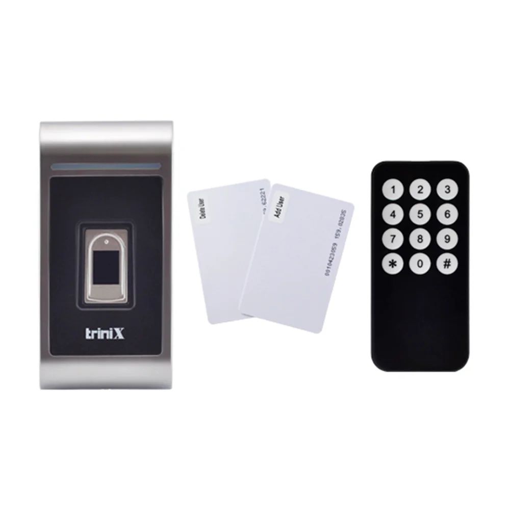 Автономний біометричний термінал контролю доступу зі зчитувачем відбитків пальців і карт стандарту Mifare 13.56 MHz; інтерфейс Wiegand-26 вхід/вихід; ємність пам’яті: 300 відбитків пальців і 10000 карт; дальність зчитування карт 2-5 см; час відчинення дверей 0-99 сек; способи доступу: відбиток пальця, карта; живлення DC 12-24 В; споживання струму ≤30 мА; металевий антивандальний корпус; ступінь захисту IP65; робоча температура -40°C~+60°C; розміри 115 / 57 / 22 мм