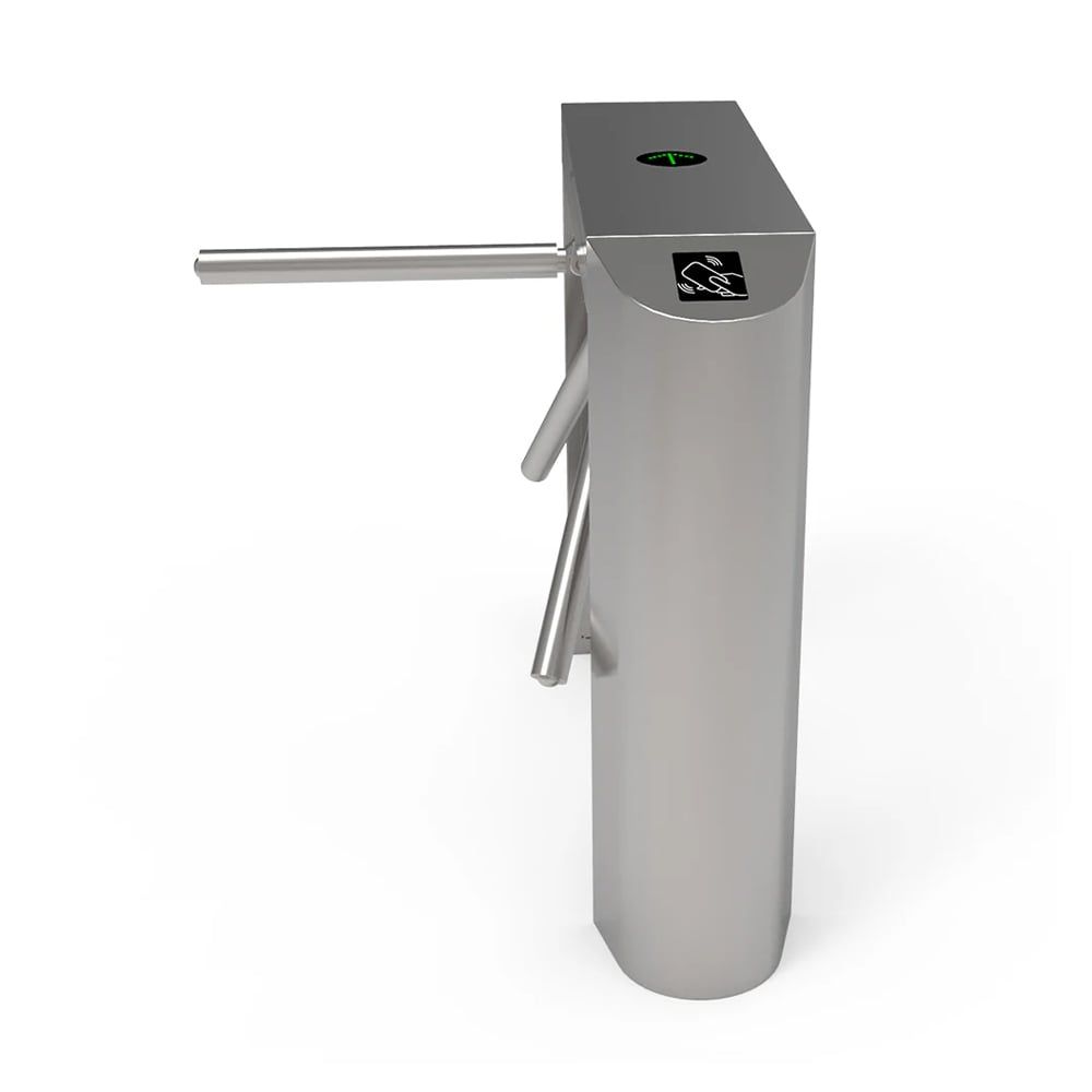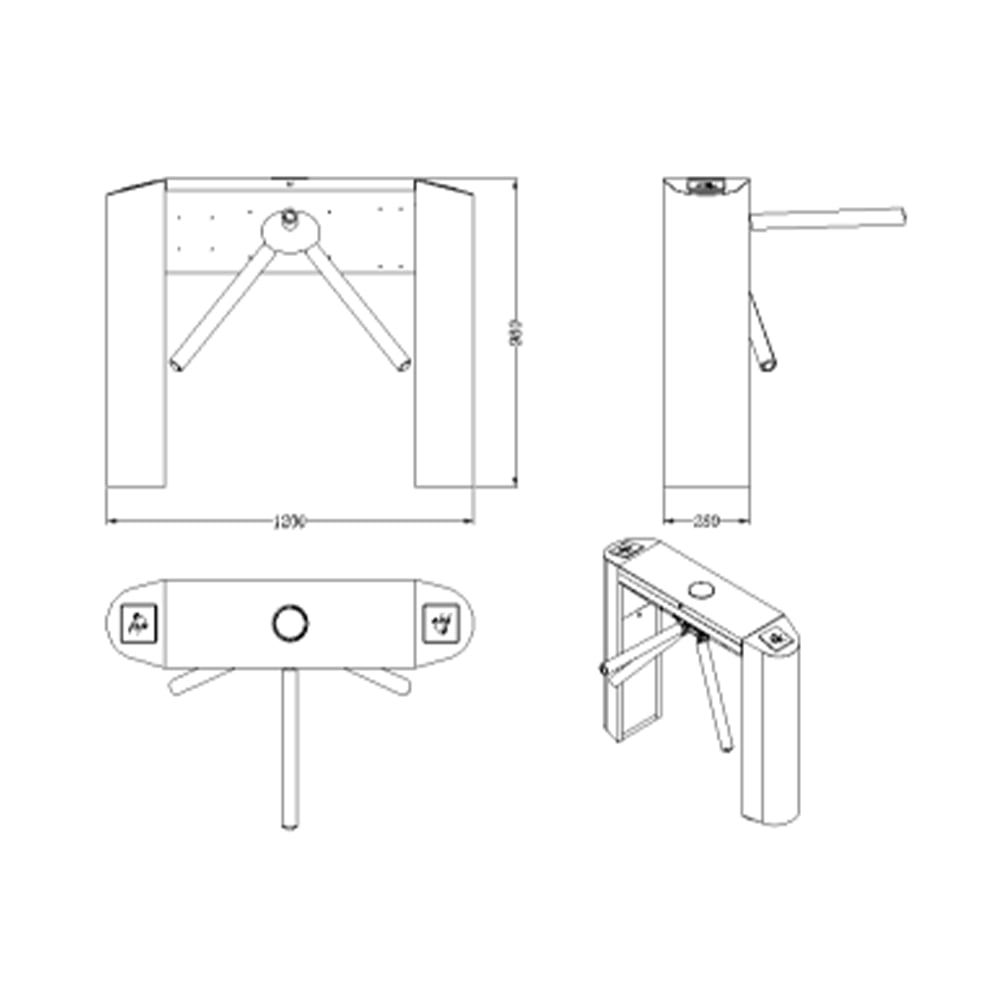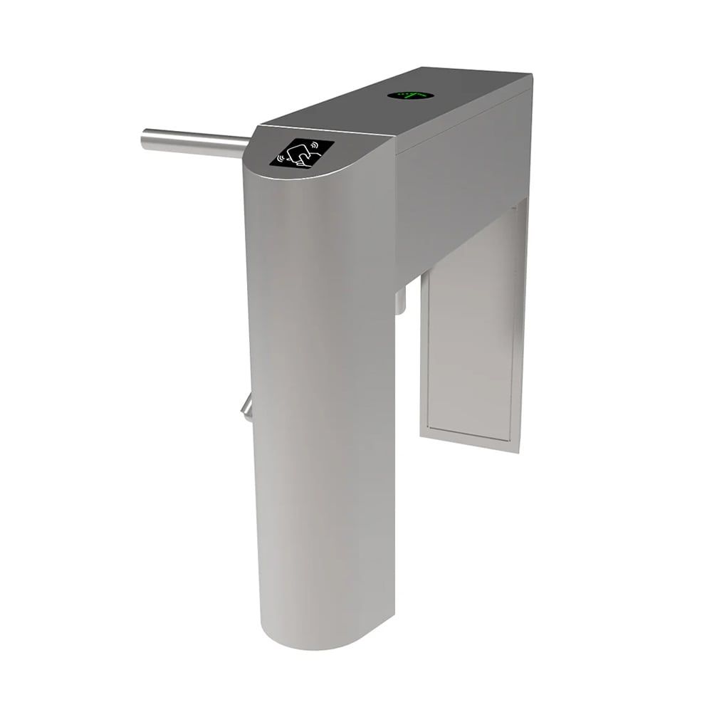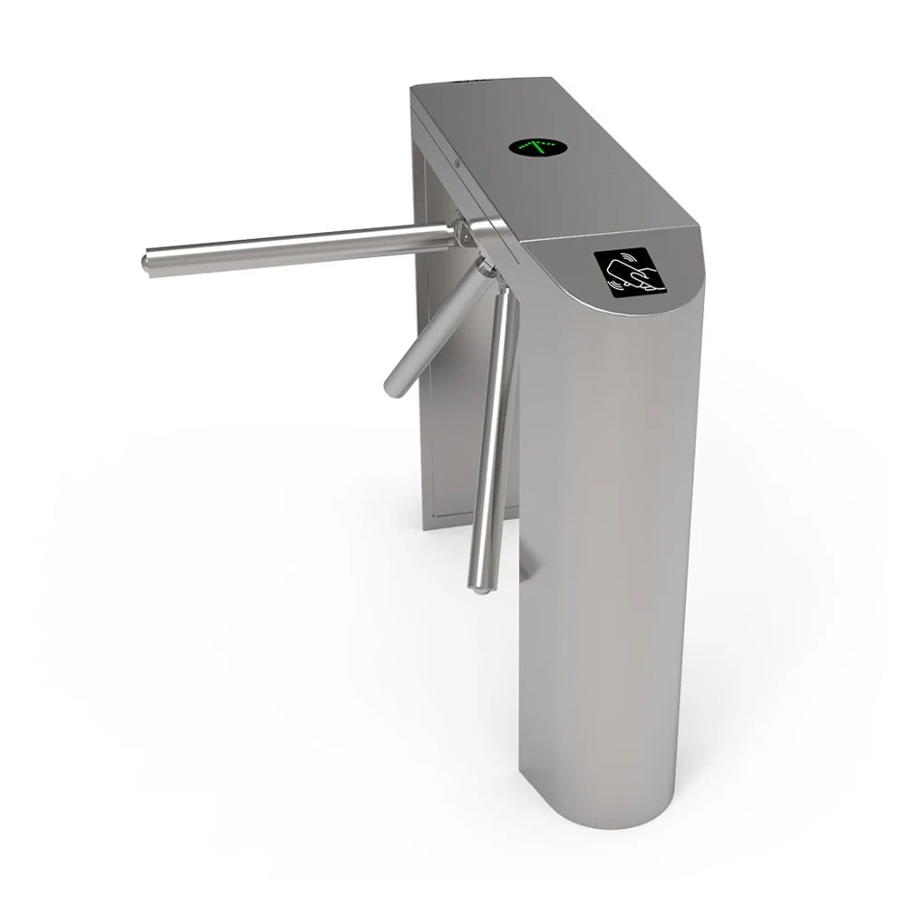 Напівавтоматичний турнікет-трипод; пропускна здатність: 35 чол/хв; час відчіненя: 0.2 с; ширина проходу: 550 мм; тип конструкції: рожковий; тип встановлення: підлогове; тип турнікета: напівзростовий; напрямок: двонаправленний; індикатор: світодіодний; встановлення: внутрішнє; матеріал: нержавіюча сталь; розміри: 1200 / 280 / 980 мм