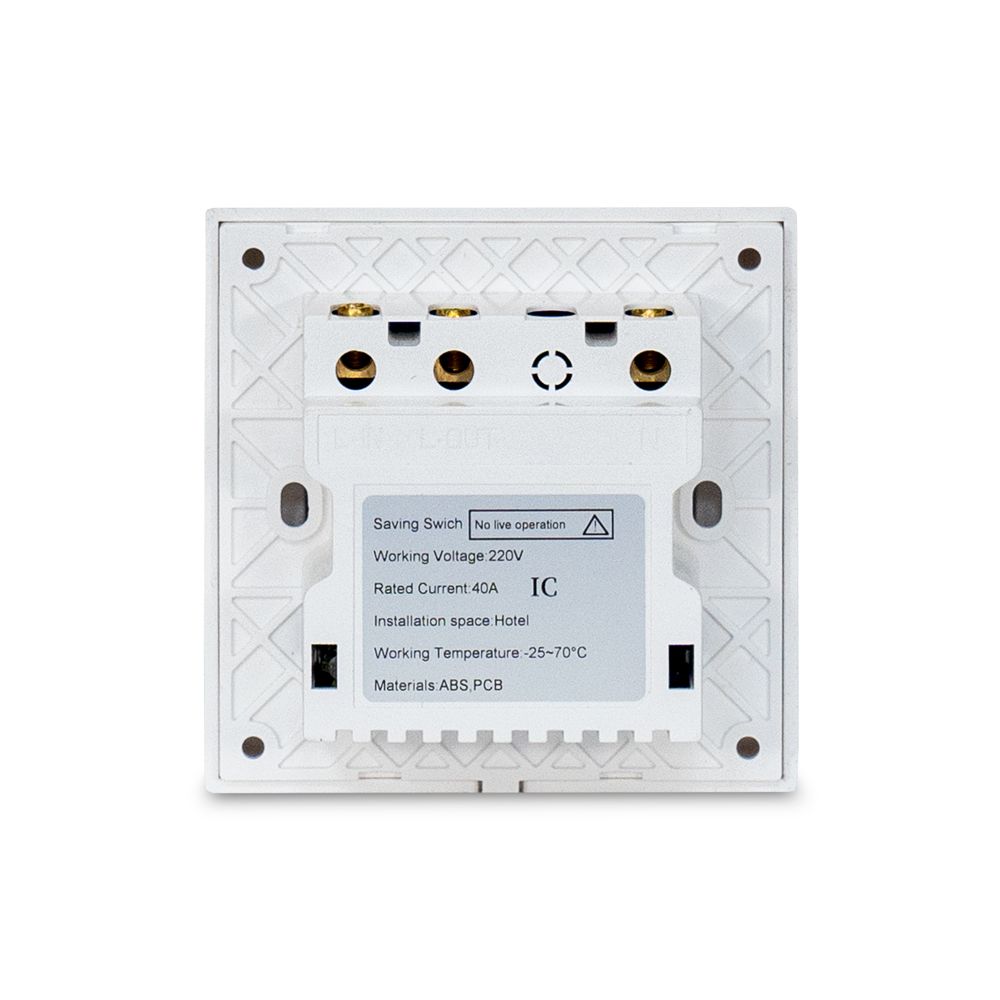 Контролер енергозберігаючий для автоматичного увімкнення освітлення та електроживлення; карта Mifare 13.56 МГц; робоча напруга AC 220 В; комутований струм 40 А; споживана потужність макс. 12 Вт; час затримки 15 сек; врізний монтаж; 85 / 85 / 45 мм