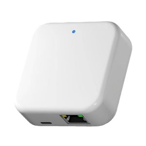 Шлюз Ethernet з підтримкою застосунку TTLock; віддалене керування підключеними замками через дротовий інтернет; мережевий стандарт IEEE802.3; підключення за допомогою мережевого UTP-кабелю, роз’єм RJ45; живлення: DC 5 В через Type-C USB; струм споживання: 500 мА; 70 / 70 / 26 мм