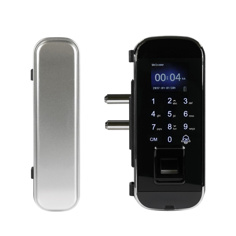 Біометричний автономний електрозамок зі зчитувачем відбитків пальців та карт EM-Marine 125 кГц; відімкнення за допомогою: відбитку пальця, коду, картки; кількість користувачів за відбитком пальця / карткою / кодом: 2000 / 1000 / 1000; 6-значний PIN-код; живлення 4*АА батарейки; сповіщення про низький заряд; можливість монтажу на скляні двері; накладний монтаж; розміри 168 / 75 / 65 мм