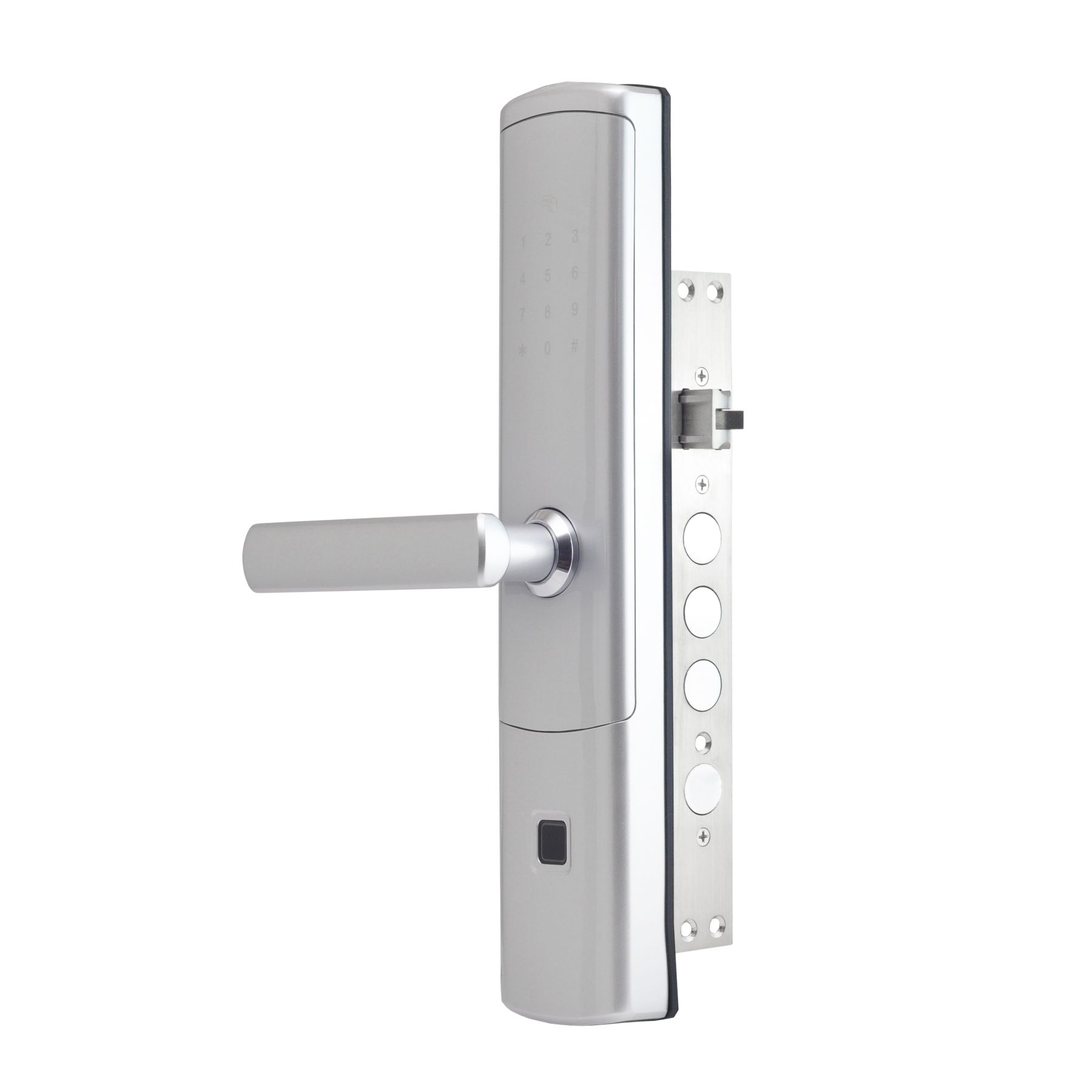 Біометричний автономний електрозамок з Bluetooth і зчитувачем відбитків пальців та карт Mifare 13.56 МГц; відімкнення за допомогою: відбитку пальця, коду, картки, застосунку, ключа; кількість користувачів за відбитком пальця / карткою / кодом: 120 / 200 / 150; роз'єм microUSB; застосунок для роботи TTLock; живлення 4*АА батарейки; тип, матеріал і товщина дверей: лівобічні, металеві/дерев'яні, 35-90 мм; врізний монтаж; матеріал корпусу алюмінієвий сплав; розміри 360 / 78 мм