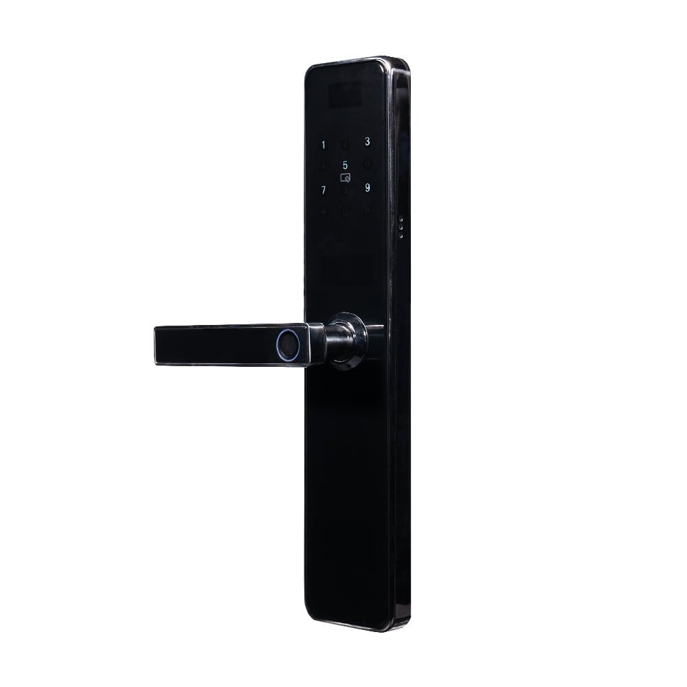 Біометричний автономний електрозамок з Bluetooth і зчитувачем відбитків пальців та карт Mifare 13.56 МГц; відімкнення за допомогою: відбитку пальця, коду, картки, застосунку, ключа; застосунок для роботи TTLock та TTHotel; кількість користувачів за відбитком пальця / карткою / паролем: 100 / 100 / 200; живлення 4*АА літієві батарейки, робота від батарейок 10-12 місяців; інтерфейс microUSB для заряджання; підходить для дверей товщиною 35-55 мм; 2 механічні ключі; матеріал корпусу нержавіюча сталь та загартоване скло; розміри 355 / 75 / 22 мм, серцевина 24-240 6068