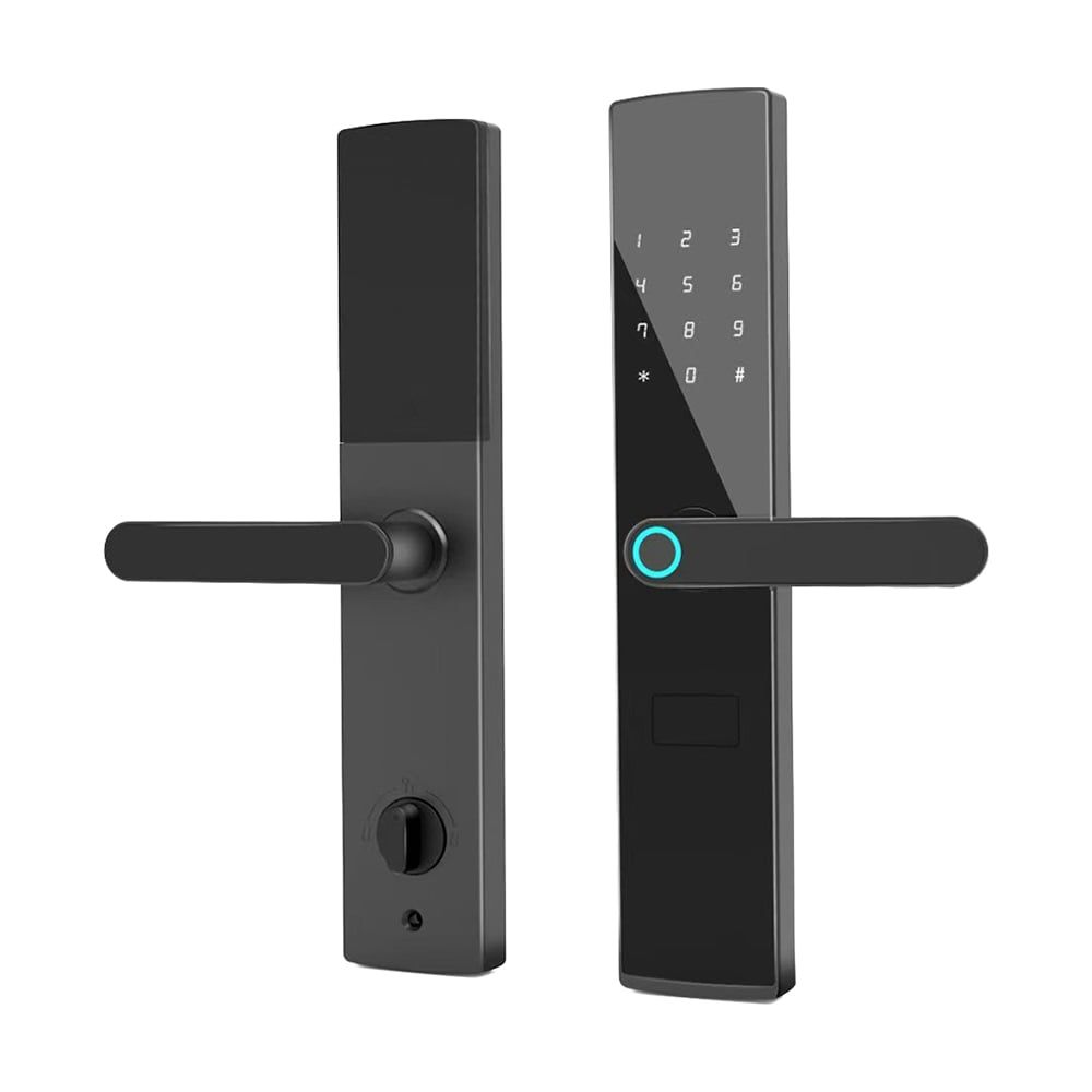 Біометричний автономний електрозамок з Wi-Fi і зчитувачем відбитків пальців та карт Mifare 13.56 МГц; відімкнення за допомогою: відбитку пальця, коду, картки, NFC, застосунку, ключа; кількість користувачів до 200; роз'єм USB Type-C; застосунок для роботи Tuya; живлення 4*АА батарейки; тип і матеріал дверей: лівобічні / правобічні, металеві / пластикові / дерев'яні; врізний монтаж; матеріал корпусу алюмінієвий сплав; розміри 355 / 68 мм, серцевина 24 / 240 6068