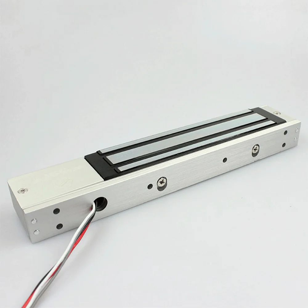 Електромагнітний замок з силою утримання до 280 кг; таймер затримки 0-30 сек; живлення 12 / 24 В; споживання струму 550 мА; світлова індикація; накладний монтаж; розміри 250 / 48 / 25 мм