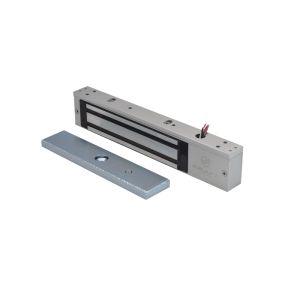 Електромагнітний замок з силою утримання до 500 кг; таймер затримки 0-30 сек; живлення 12/24 В; споживання струму 750 мА; світлова індикація; накладний монтаж; розміри 265 / 70 / 40 мм