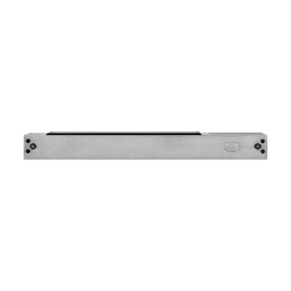 Електромагнітний замок з силою утримання до 300 кг; таймер затримки 0-30 сек; живлення 12/24 В; споживання струму 550 мА; світлова індикація; накладний монтаж; розміри 250 / 55 / 27 мм