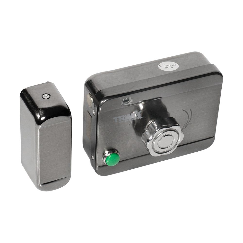 Замок електромоторний універсальний; металевий; ригельний; вбудований поворотний механізм відімкнення – ручка; автоматичне замикання; 3 ключі в комплекті, напруга живлення 12 В; струм споживання 600 мА; таймер затримки 9 сек; накладний монтаж; розміри 128 / 105 / 46 мм