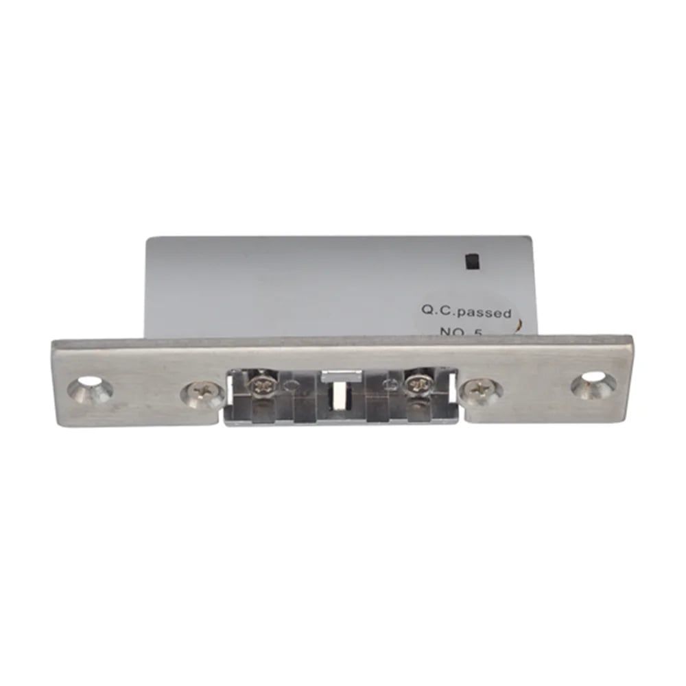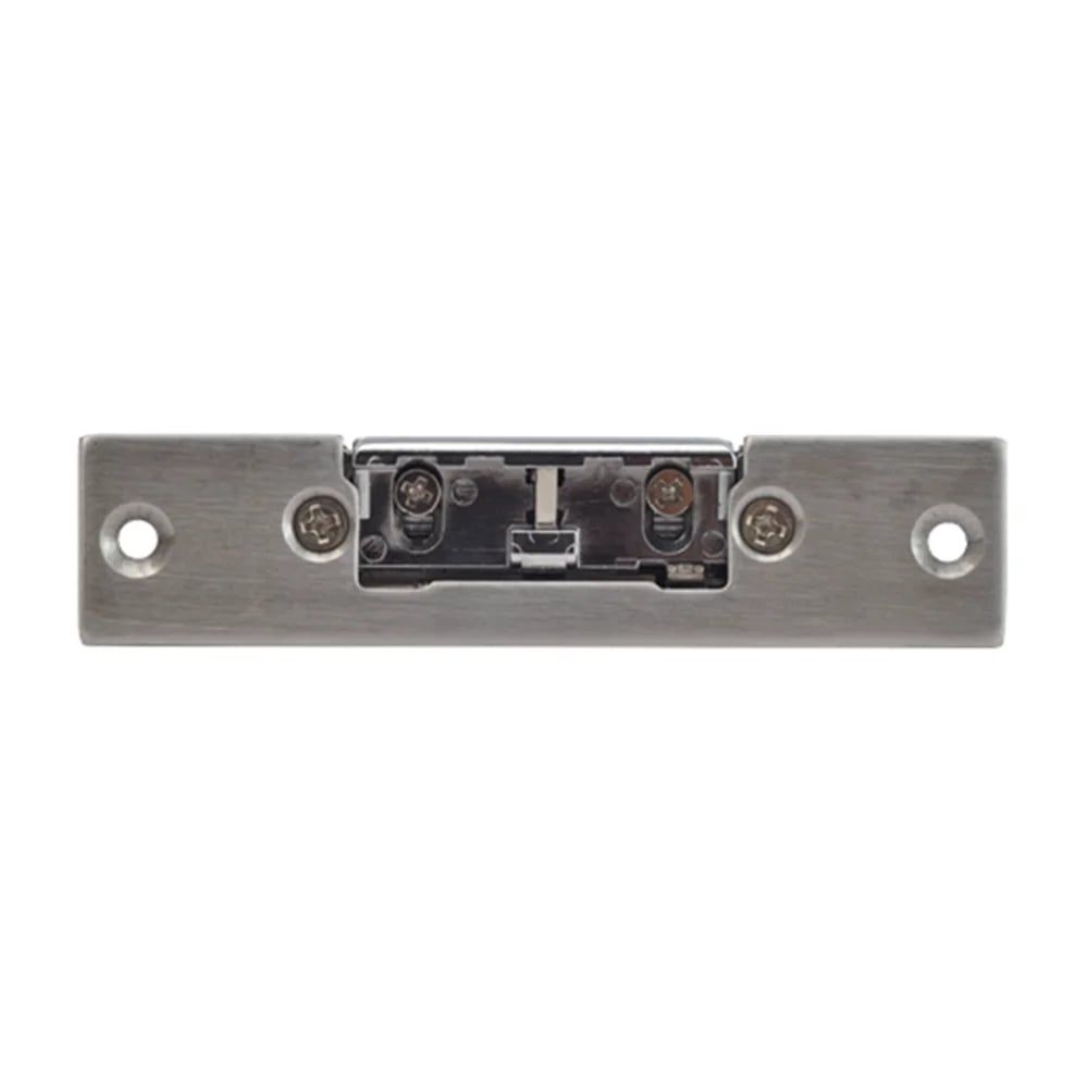 Защіпка електромеханічна, NO (нормально-розімкнена) – відімкнена за відсутності живлення, живлення 12 В, споживання струму 400 мА, нержавіюча сталь, розмір 110 / 25 / 31 мм