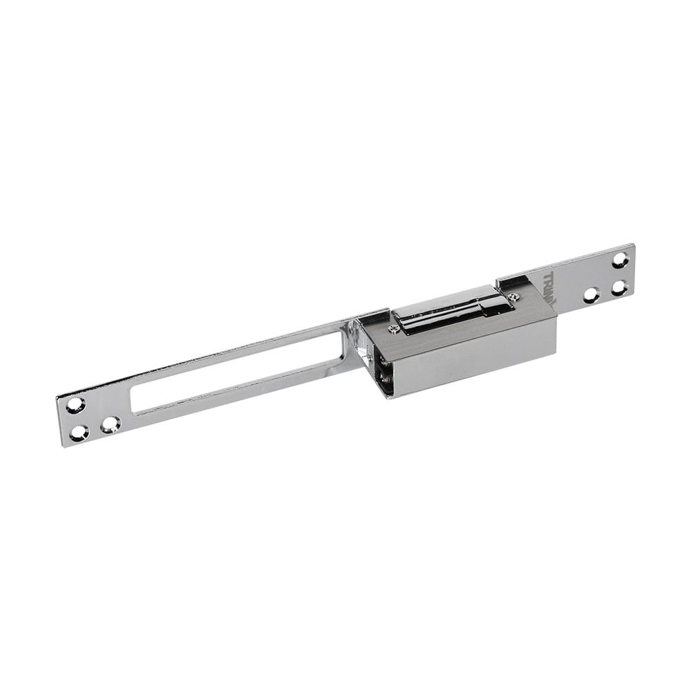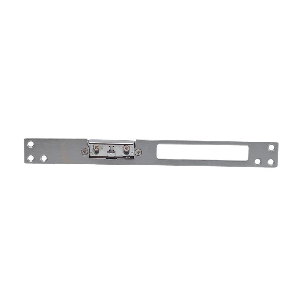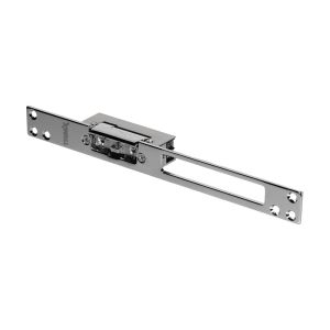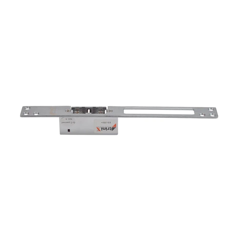 Защіпка електромеханічна з подовженою планкою, NO (нормально-розімкнена) – відімкнена за відсутності живлення, живлення 12 В, споживання струму 400 мА, нержавіюча сталь, розмір 250 / 25 / 31 мм