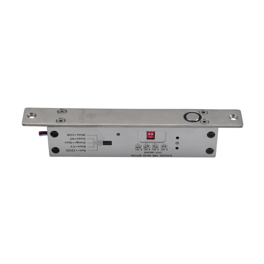 Електроригельна врізна защіпка, НР – відімкнена за відсутності живлення; таймер затримки зачинення 0,3,6,9 с; вбудований датчик стану замка; світлодіодна індикація роботи; живлення 12 В, споживання струму 130 мА; розмір защіпки 192 / 25 / 34 мм, довжина ригеля 15.5 мм / діаметр 12.5 мм