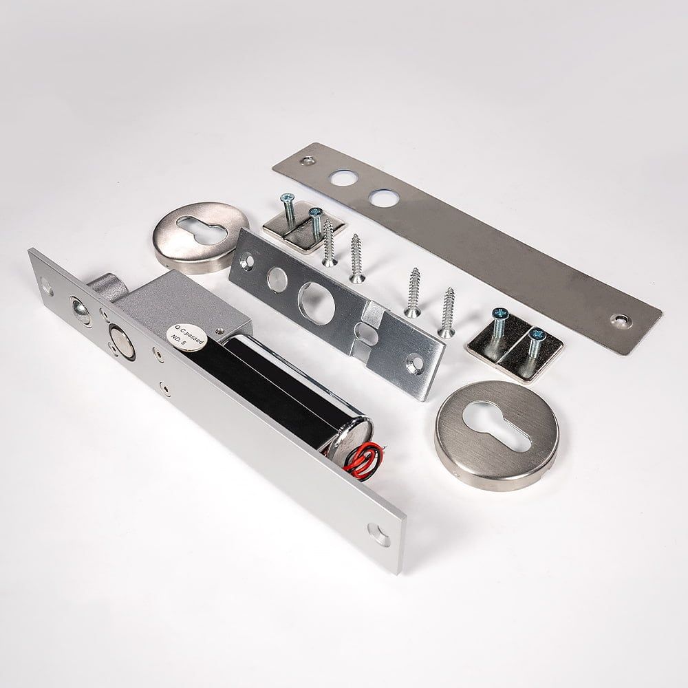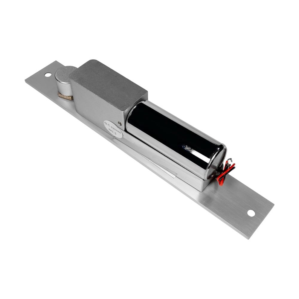 Електроригельна врізна защіпка, НР – відімкнена за відсутності живлення; таймер затримки зачинення 0,3,6,9 с; датчик стану дверей NO/NC/COM; живлення 12 В, споживання струму 130 мА; розмір защіпки 205 / 35 / 42 мм, відповідної планки 90 / 25 мм