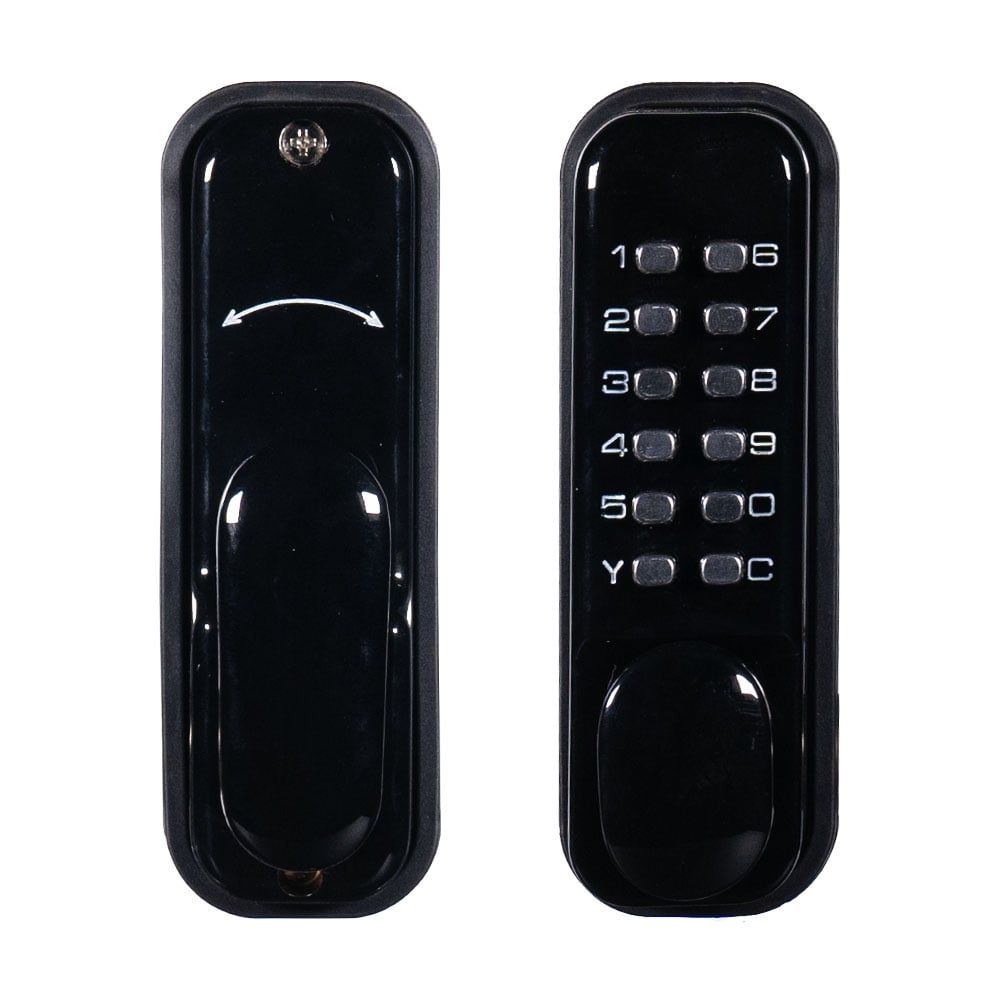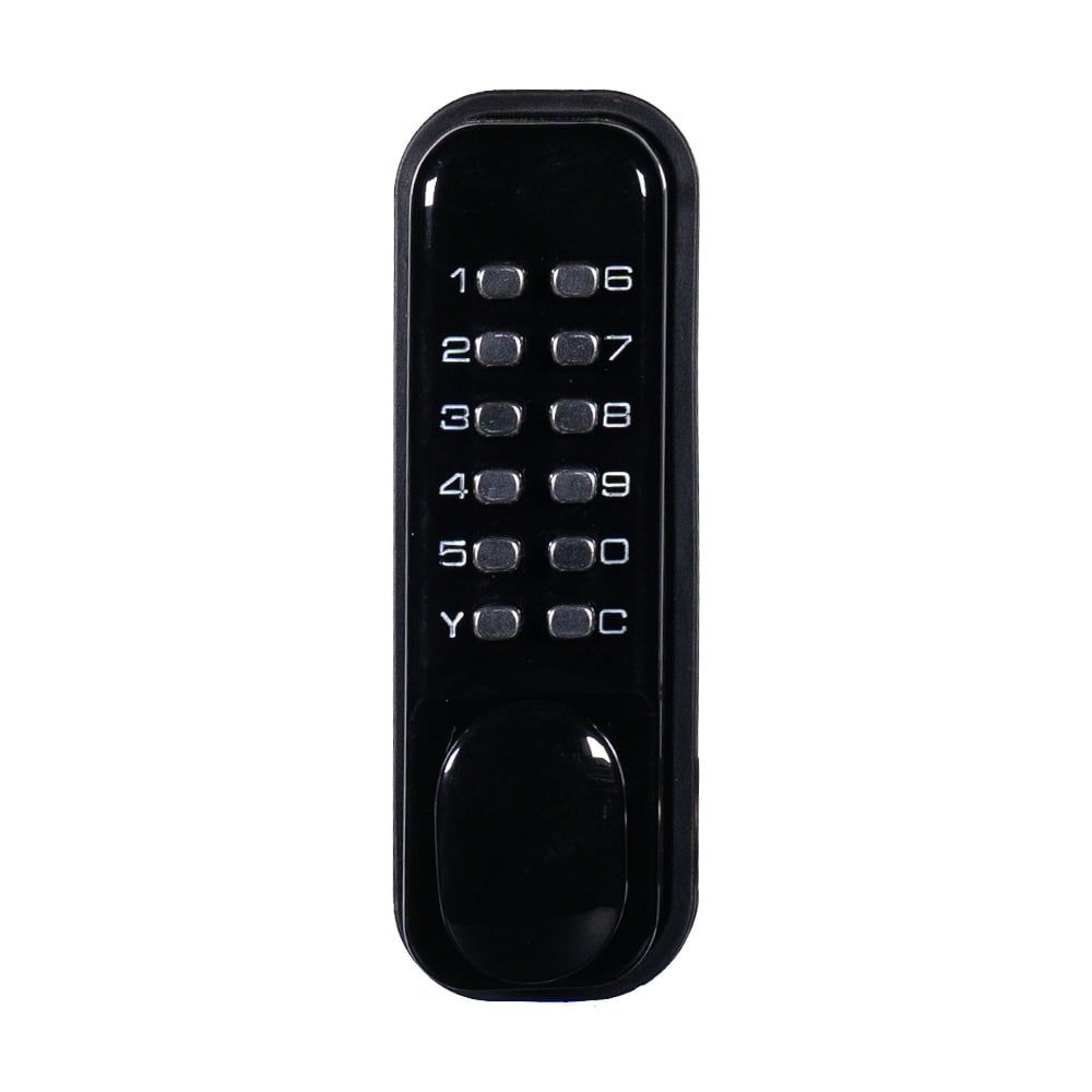 Замок кодовий механічний; не вимагає живлення; відімкнення за допомогою коду; універсальний, для всіх типів дверей; клас захисту IP66; матеріал корпусу сплав цинку; робоча температура від -20°C до +50°C; одинарна защіпка у комплекті; розміри 142 / 42 / 25 мм