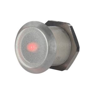 Врізний антивандальний RFID-зчитувач карт та брелоків EM-Marine (125 kHz); відстань зчитування до 3 см; інтерфейс Wiegand 26; вбудований світлодіод; живлення DC 12 В; низьке енергоспоживання струму до 30 мА; матеріал корпусу пластик; габаритні розміри D25 / 20 мм