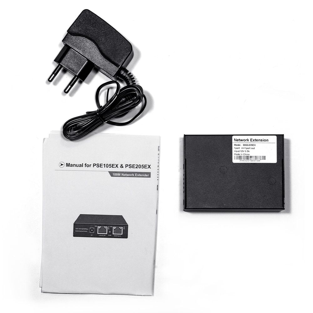 Мережевий подовжувач 10/100M на відстань до 500 м; 1 вхідний порт RJ45 10/100Mbps + 1 вихідний порт RJ45 10/100Mbps; живлення 12 В/0.5 А; світлодіодна індикація роботи; робоча температура від -40°C до +80°C; розміри 90 / 69 / 23 мм; вага 130 г