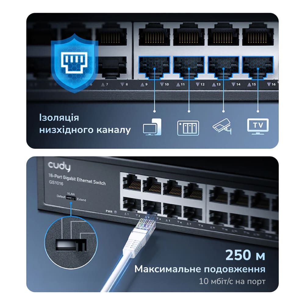Комутатор 16-портовий некерований Cudy GS1016 гігабітний
