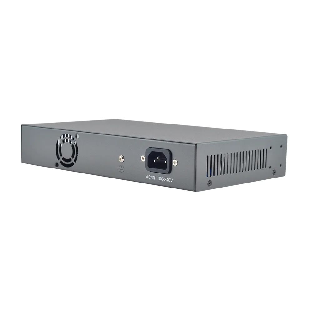 10-портовий гігабітний PoE-комутатор з 8 портами PoE 1000Mб та 2 Uplink 10/100/1000Мб портами; пропускна здатність 20 Гбіт/с; стандарт живлення РоE IEEE802.3at/af, PoE Pin: 1,2+/3,6-; максимальна відстань живлення PoE 100 м; загальна потужність навантаження 150 Вт (до 30 Вт на порт); живлення AC 100~240 В, 50~60 Гц; робоча температура від -5°C до +45°C; розміри 250 / 150 / 44 мм