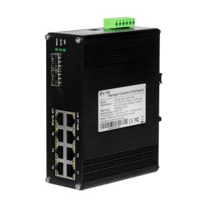 Керований L2+ 10-портовий промисловий комутатор; 8 портів PoE 10/100/1000M/2.5G Base-T, що підтримують Auto MDI/MDIX, 2 SFP-порти 1.25G/2.5G/10G Base-X SFP+; загальна потужність PoE 240 Вт; пропускна здатність 110 Гб/с; стандарти PoE IEEE802.3af/at; мережеві стандарти IEEE802.3, IEEE802.3u, IEEE802.3ab, IEEE802.3z, IEEE802.3bz, IEEE802.3ae, IEEE802.3p, IEEE802.1d; таблиця MAC-адрес 8K; можливість використання USB-C порту для керування; керування мережею через CLI, WEB, SNMPv1/v2/v3, Telnet, EEE, LLDP, DHCP сервер/клієнт (IPv4/IPv6), Cloud/MQTT; підтримка VLAN, QOS, ASL; живлення DC 48-57 В/5 А (підійде блок живлення 48В/5А на 240 Вт, який купується окремо); монтаж на DIN-рейку; клас захисту IP40; алюмінієвий корпус; робоча температура -40°C~+80°C; розміри 149 / 114 / 50 мм; вага 550 г