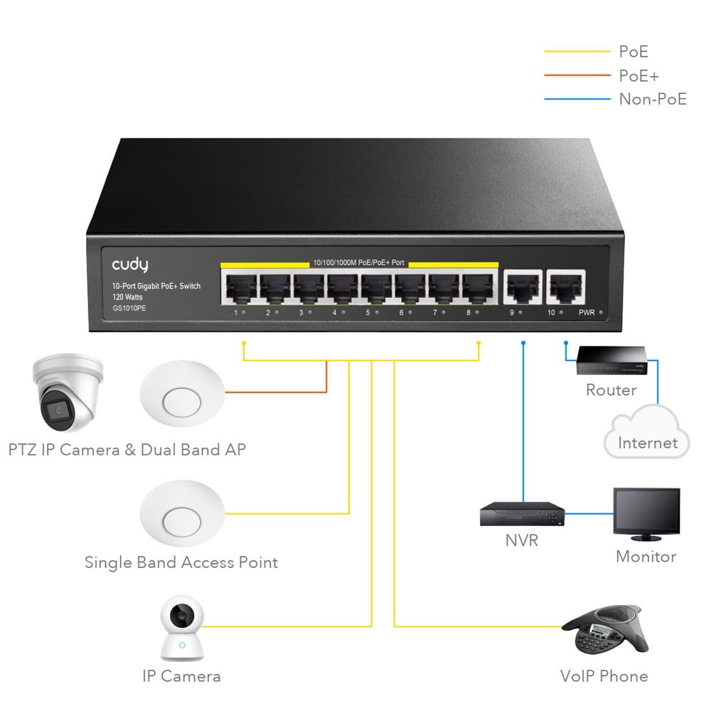 PoE-комутатор 10-портовий некерований Cudy GS1010PE 8 портів PoE+ гігабітний 120W
