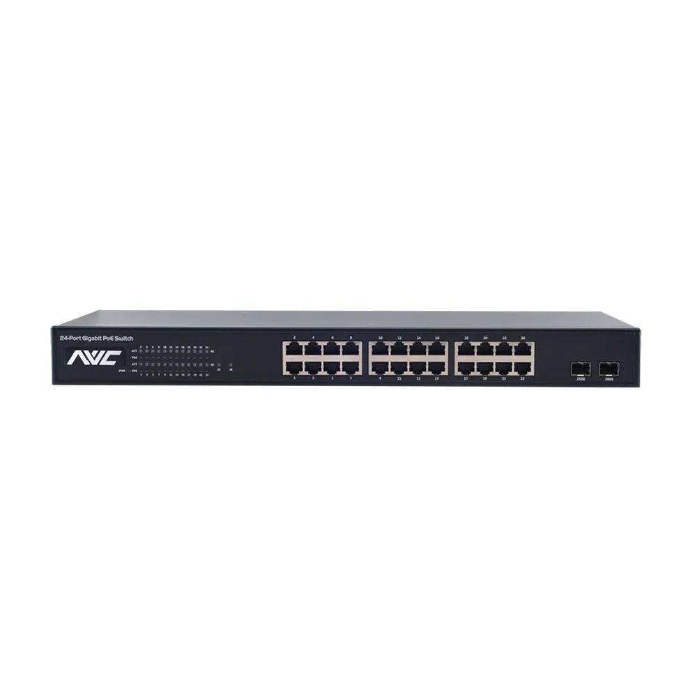 26-портовий гігабітний PoE-комутатор з 24-портами PoE 10/100/1000Mб + 2 порти SFP gigabit Uplink; пропускна здатність 52 Гбіт/с; стандарт живлення PoE IEEE802.3at/af, PoE Pin: 1,2+/3,6-; максимальна відстань живлення PoE 100 м; загальна потужність навантаження 350 Вт; живлення AC 100~240 В, 50~60 Гц; робоча температура від -5°C до +45°C; розміри 440 / 220 / 44 мм