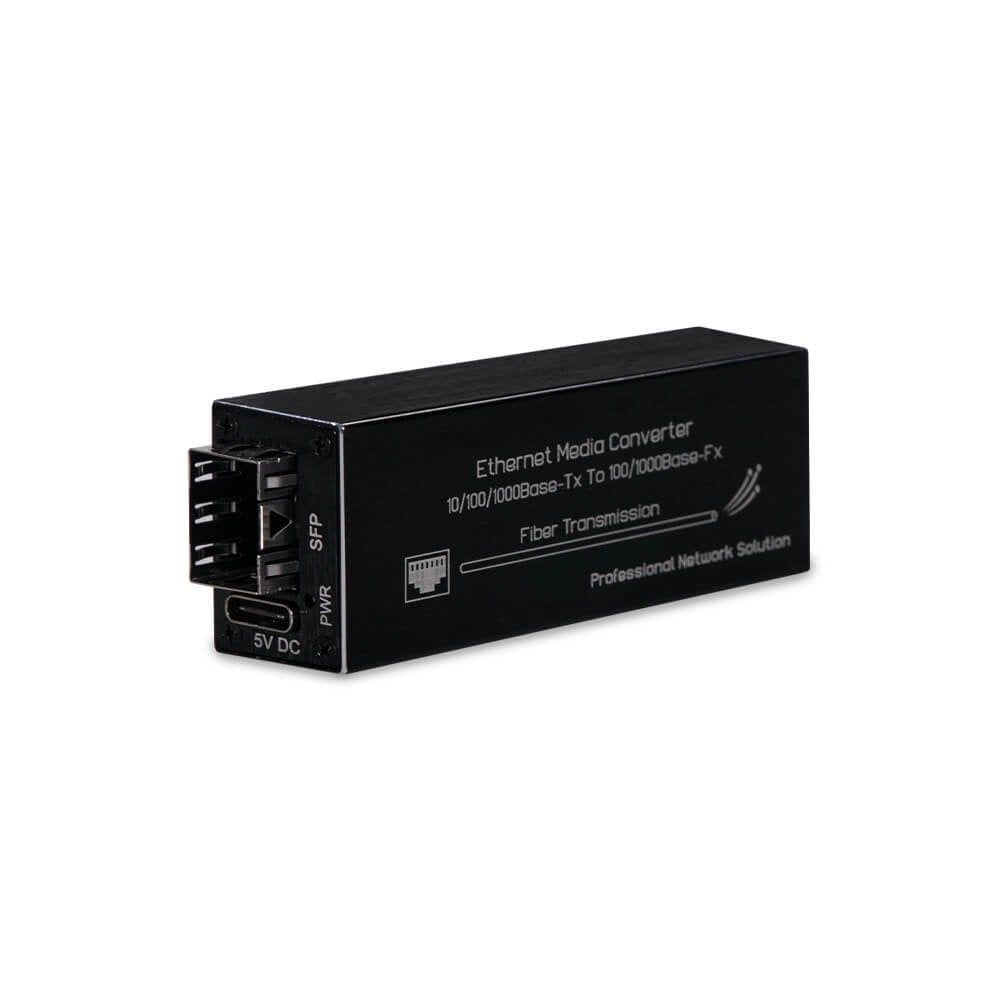 Гігабітний оптичний медіаконвертер 10/100/1000M Base-T; кількість портів: 1 порт Ethernet 1000 Мб + 1 інтерфейс SFP (потребує для роботи додатковий модуль); робоча довжина хвилі 1310/1550 нм (залежить від SFP-модуля); максимальна робоча відстань оптичного інтерфейсу залежить від SFP-модуля; живлення 5-15 В (Type-C); робоча температура від 0°C до +45°C; розміри 78 / 27 / 18 мм; вага 46 г. Блок живлення у комплекті