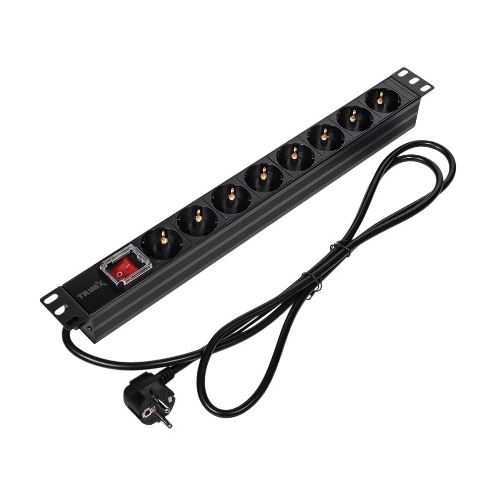 Блок розеток Trinix TRX-PDU/8M-16А Black для комутаційної шафи 19" на 8 розеток, з вимикачем