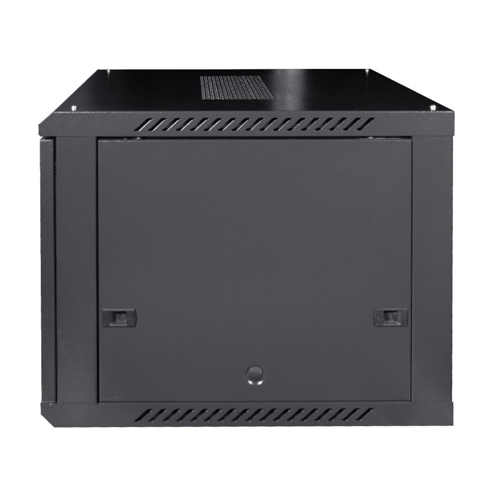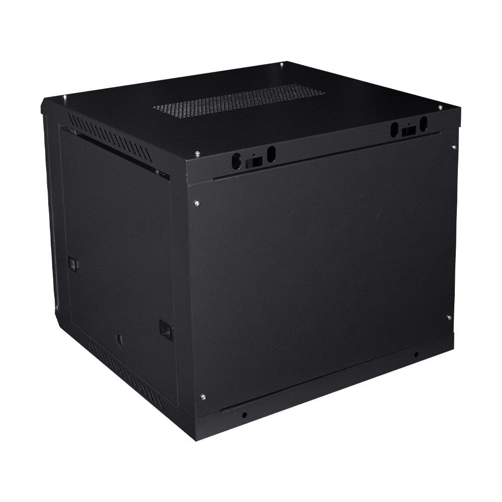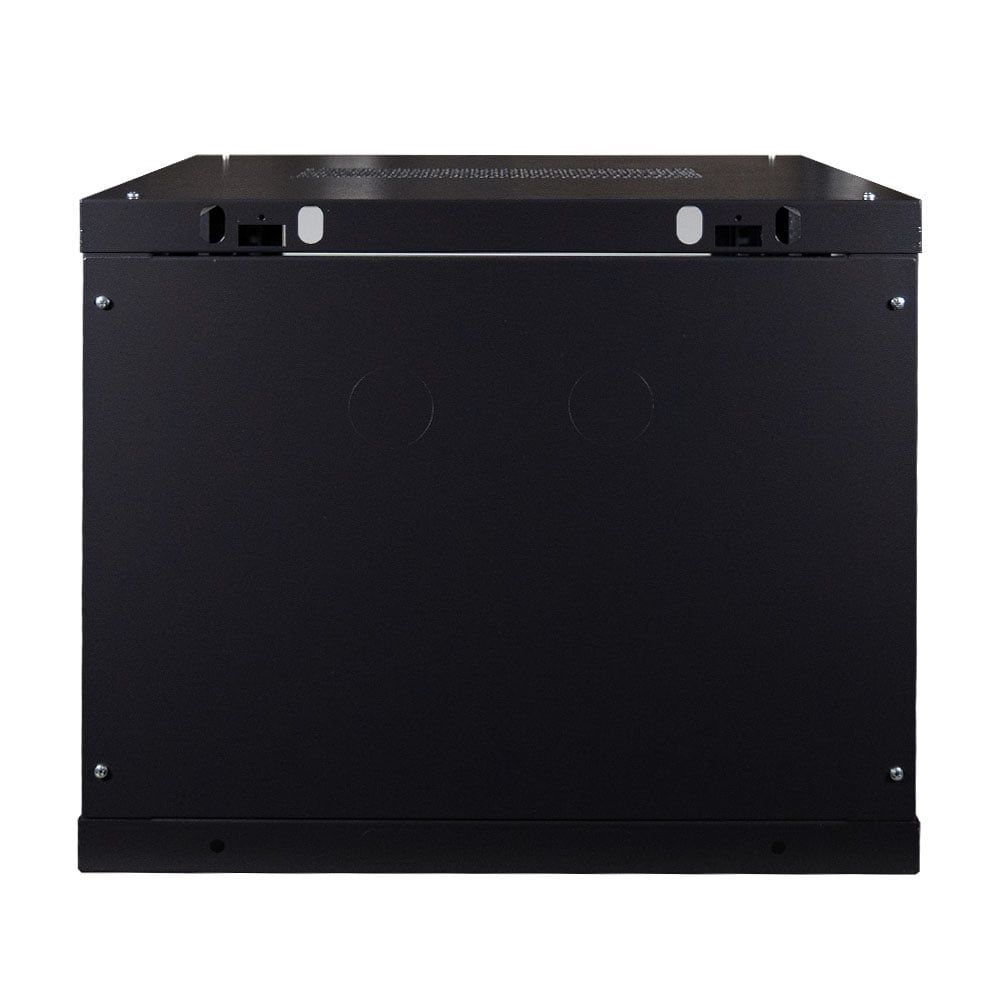 Комутаційна шафа з габаритними розмірами: ширина 600 мм, глибина 600 мм, висота 9U – 500 мм; максимальне навантаження 100 кг; матеріал корпусу: сталь, пофарбована порошковою фарбою чорного кольору RAL9005; дверцята із загартованого скла, зачиняються на замок (2 ключі у комплекті); кабельні введення у верхній, нижній та задній панелях; ступінь захисту IP20; постачання – у розібраному вигляді