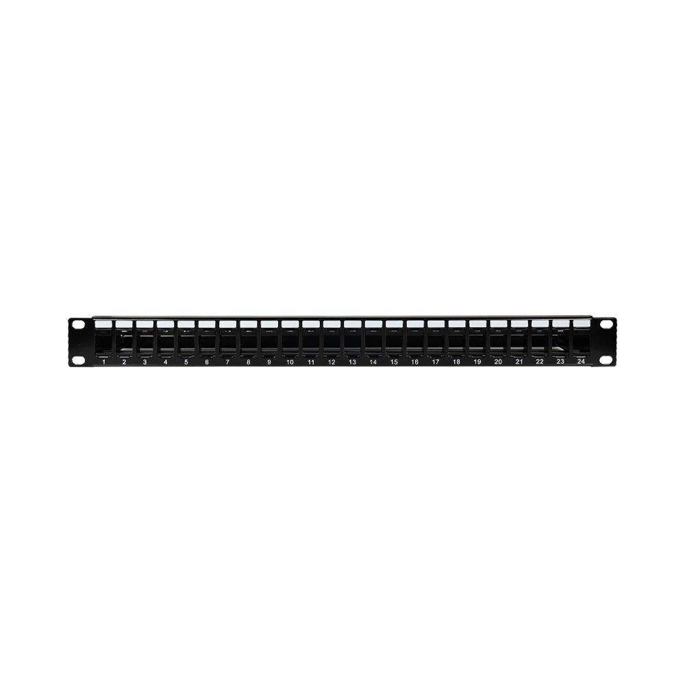 Патч-панель мережева для модулів Keystone на 24 порти, для встановлення у стійки/шафи 19 дюймів; висота 1U; кабель UTP (неекранована вита пара); задній організатор кабелю