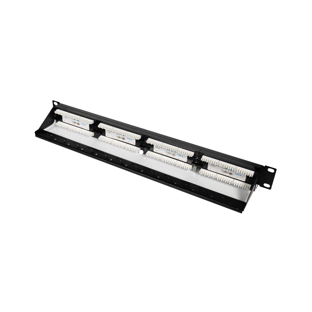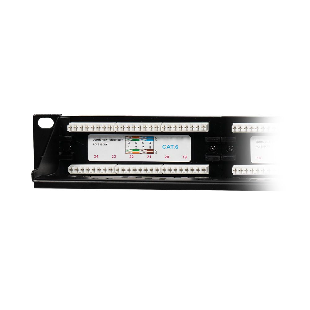 Патч-панель 24 порти NVC-PN-01/24 CAT5/CAT6 19" 1U неекранована, з заднім організатором кабелю