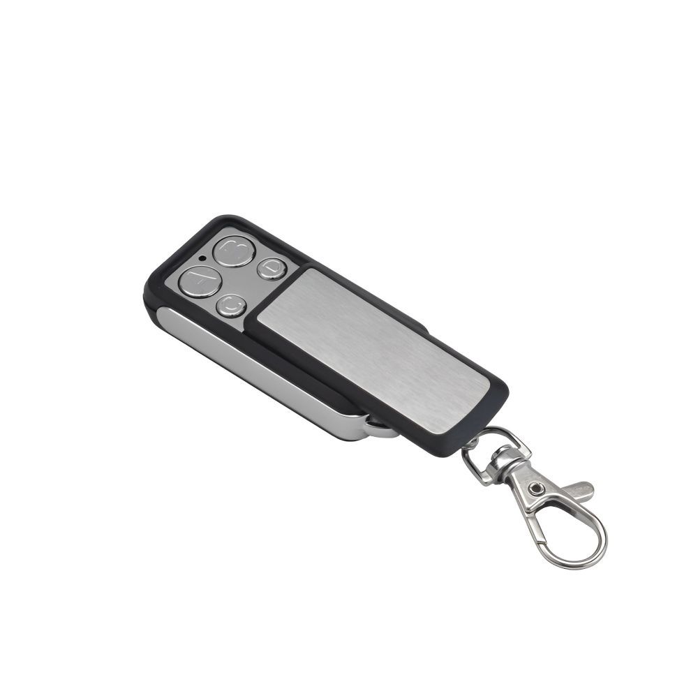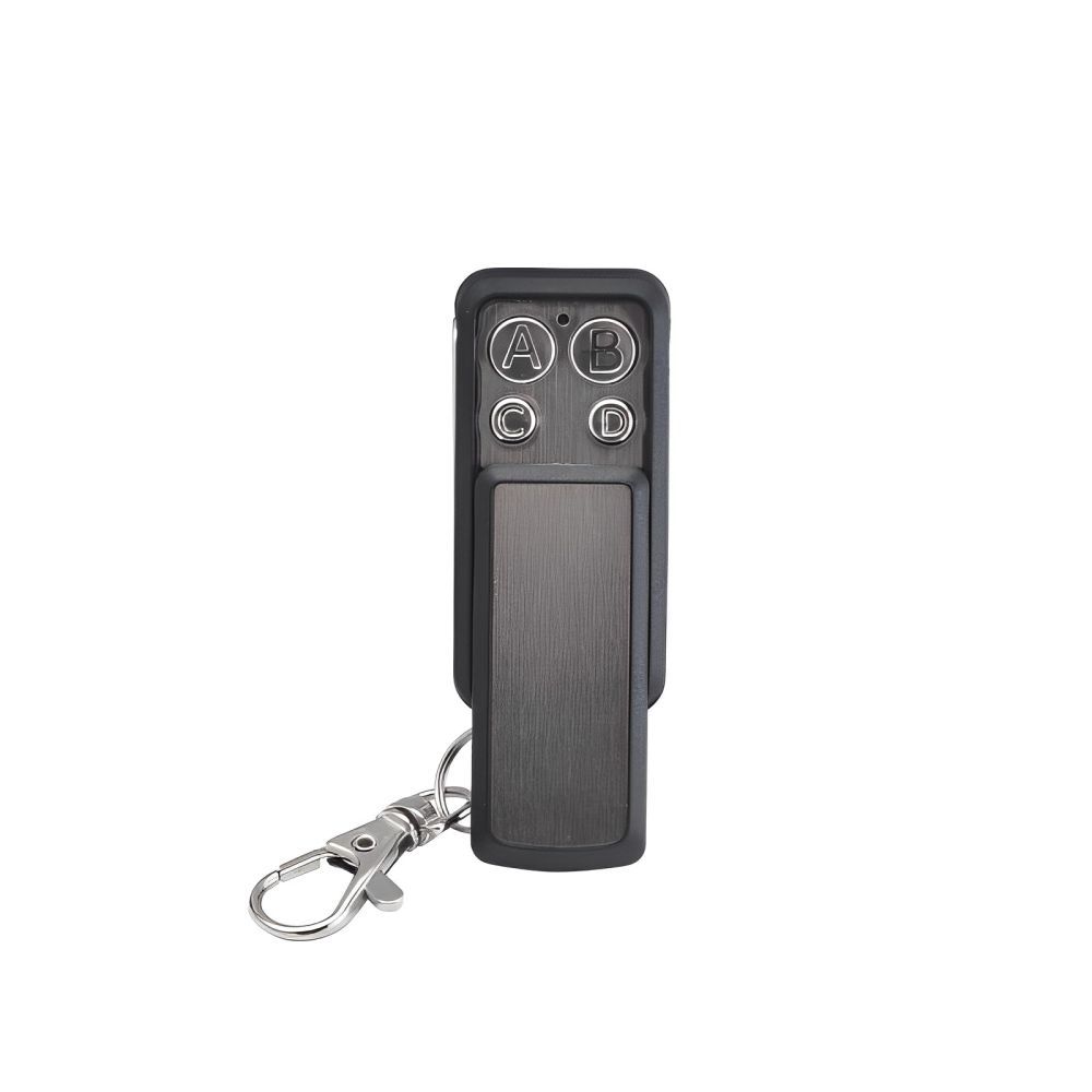 Радіобрелок-пульт дистанційного керування; частота 433 МГц; кількість кнопок: 4; радіус дії до 100 м; код, що приймається: фіксований (24 біт); живлення літієва батарейка 12В (тип 27А); потужність передавача менше 5 мВт; розміри 35 / 10 / 14 мм