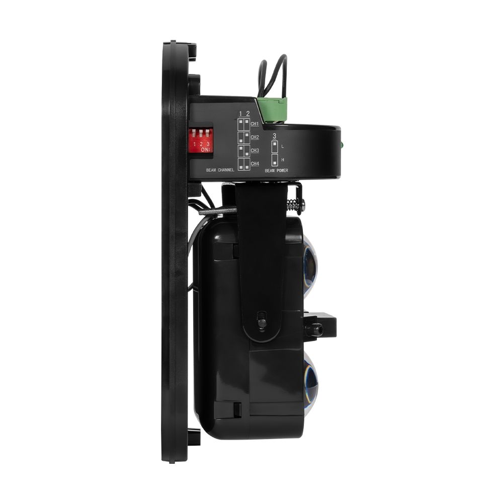 Пасивний, 2-х променевий інфрачервоний датчик з нагрівачем, система виявлення: виявлення за перериванням 2-х променів; Гранична відстань виявлення руху на вулиці 60-80 м та всередині приміщення 180-240 м; Джерело випромінювання: інфрачервоний світлодіод; Вибір частоти променя: 4 канали; Час реагування: 50 - 700 мсек ; Вихід тривоги: реле з контактом, що перемикається 0,5 А макс. 30 В змінного / постійного струму; Напруга живлення: 13,8-24 В DC 11-18 В AC; Струм живлення: приймач / передавач: 100мА max 12 - 24 В постійного струму; Вихід контакту НСД: однополюсний вимикач; Кут горизонтального налаштування: ±90°; Кут вертикального налаштування: ±10°; Видошукач: лінза; Особливості моделі: вихід для регулювання чутливості, індикатор норми; Розміри 171 х 82 х 77 мм; Вага (передавач і приймач): 300 г;