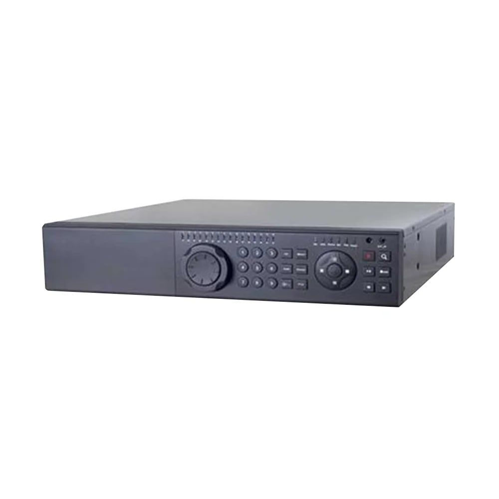 16 каналів відео + 16 каналів аудіо (RCA); відеовихід: комбінований: BNCx1, SPOTх1 VGA (1280*1024), HDMI (1080P), аудіовихід RCAx1, відеовиходи BNCх16, тривожні вхід х 16/вихід х 4, мікрофон RCAx1, керування: ІЧ-пульт, маніпулятор USB, 8 HDD (SATA) до 3Тб / E-SATAх2, інтерфейс RS-485x2, 2 порти USB 2.0, мережа RJ45 10/100M/1000М, швидкість запису: 400fps(WD1) 960х576, 400fps(D1), 400fps(2CIF), 400fps(CIF), перегляд архіву локально/віддалено 16 каналів, AC100-230 В, габаритні розміри 430 / 420 / 90 мм