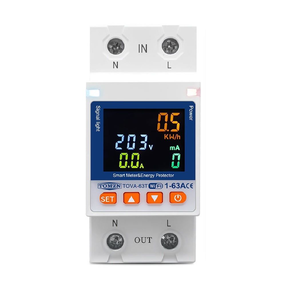 Розумний автоматичний вимикач з Wi-Fi (Tuya) TOMZN TOVA-63T 63A colorful display з моніторингом енергоспоживання, захисним реле напруги та захистом від витоку струму