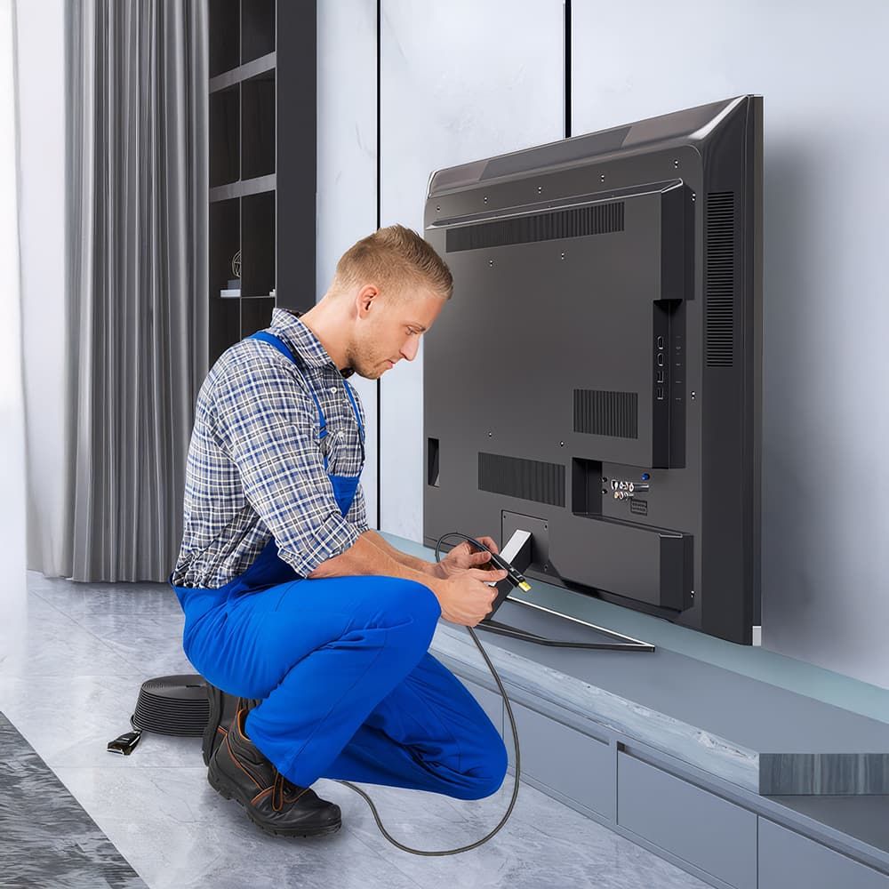 Кабель HDMI довжиною 100 м; стандарт HDMI 2.1; підтримка сигналів роздільної здатності 8K@60Hz/4K@120Hz, 3D, HDR; пропускна здатність 48 Гбіт/с; позолочені контакти; 4-жильний оптичний, жила діаметром 4.8 мм; екранування з алюмінієвої фольги; ПВХ-оболонка. Підключення: конектор з надписом "SOURCE" підключається до джерела сигналу (відеореєстратор, комп'ютер, ноутбук, ТВ-бокс), а другий конектор з надписом "DISPLAY" підключається до монітора, телевізора або проектора