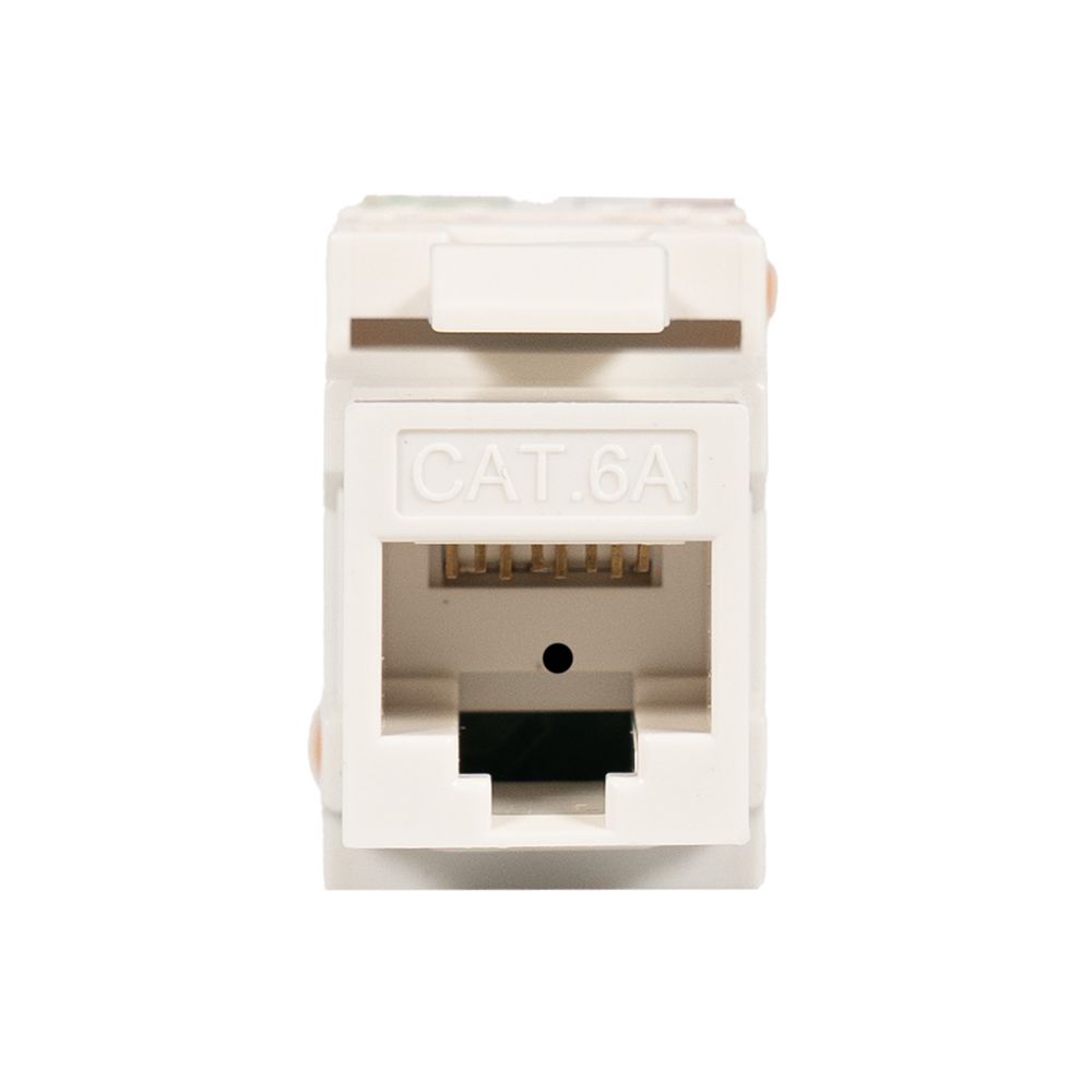 Модуль Keystone для з’єднання з витою парою або патч-кордами з конекторами RJ45 на кінцях, складова частина модульної патч-панелі; категорія CAT5/CAT6; екранування UTP – неекранований; кабель у модуль встановлюється без інструментів; кут закладання кабелю 180 градусів