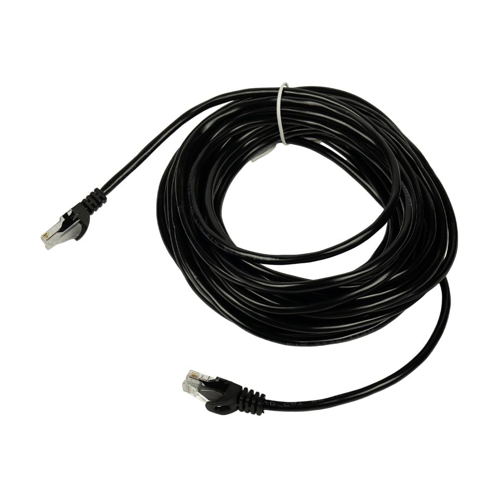 Патч-корд мережевий довжиною 15 м; неекранована вита пара UTP CAT5E; матеріал провідника біметал ССA – алюмінієвий сплав покритий міддю, 7*16 мм, 26AWG; 2 конектори RJ45; оболонка ПВХ чорного кольору