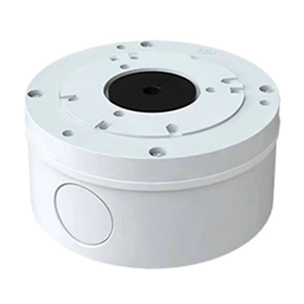 Розподільна коробка для купольних та циліндричних камер для настінного або стельового монтажу, є нижній вхід та бічний вхід для кабелю. Ступінь захисту IP65, металевий корпус. Розміри 111.7 / 55 мм, вага 332 г